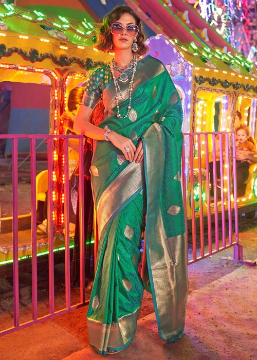Green Banarasi Silk Saree With Jacquard Woven Work