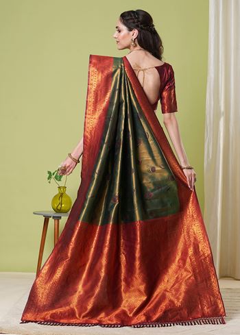 Green Banarasi Silk Saree With Beautiful Jacquard Designer Work