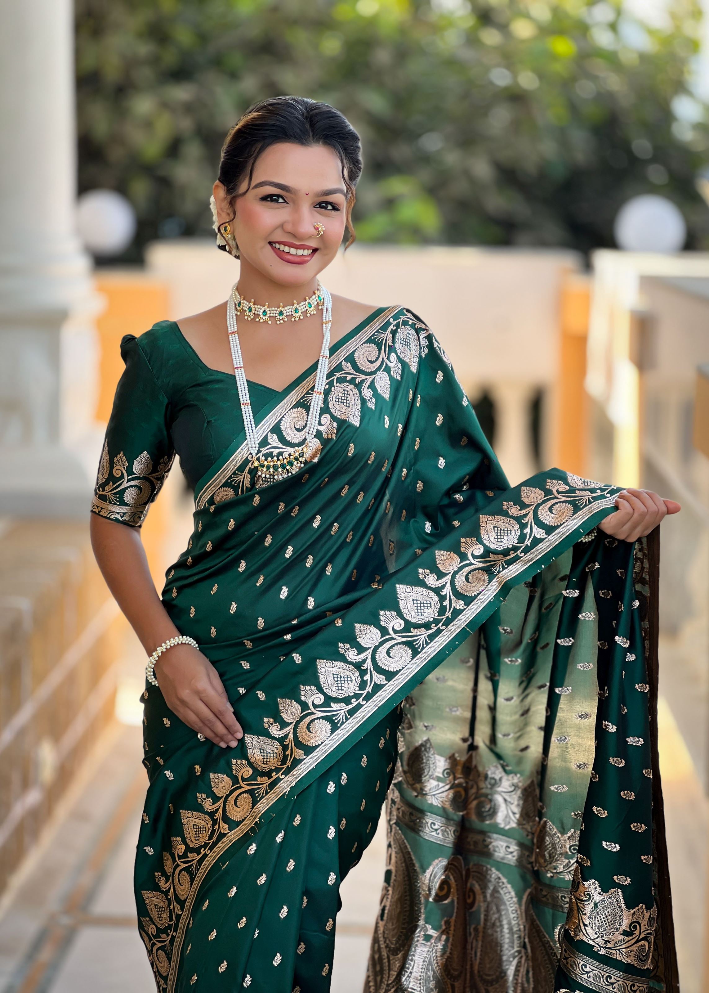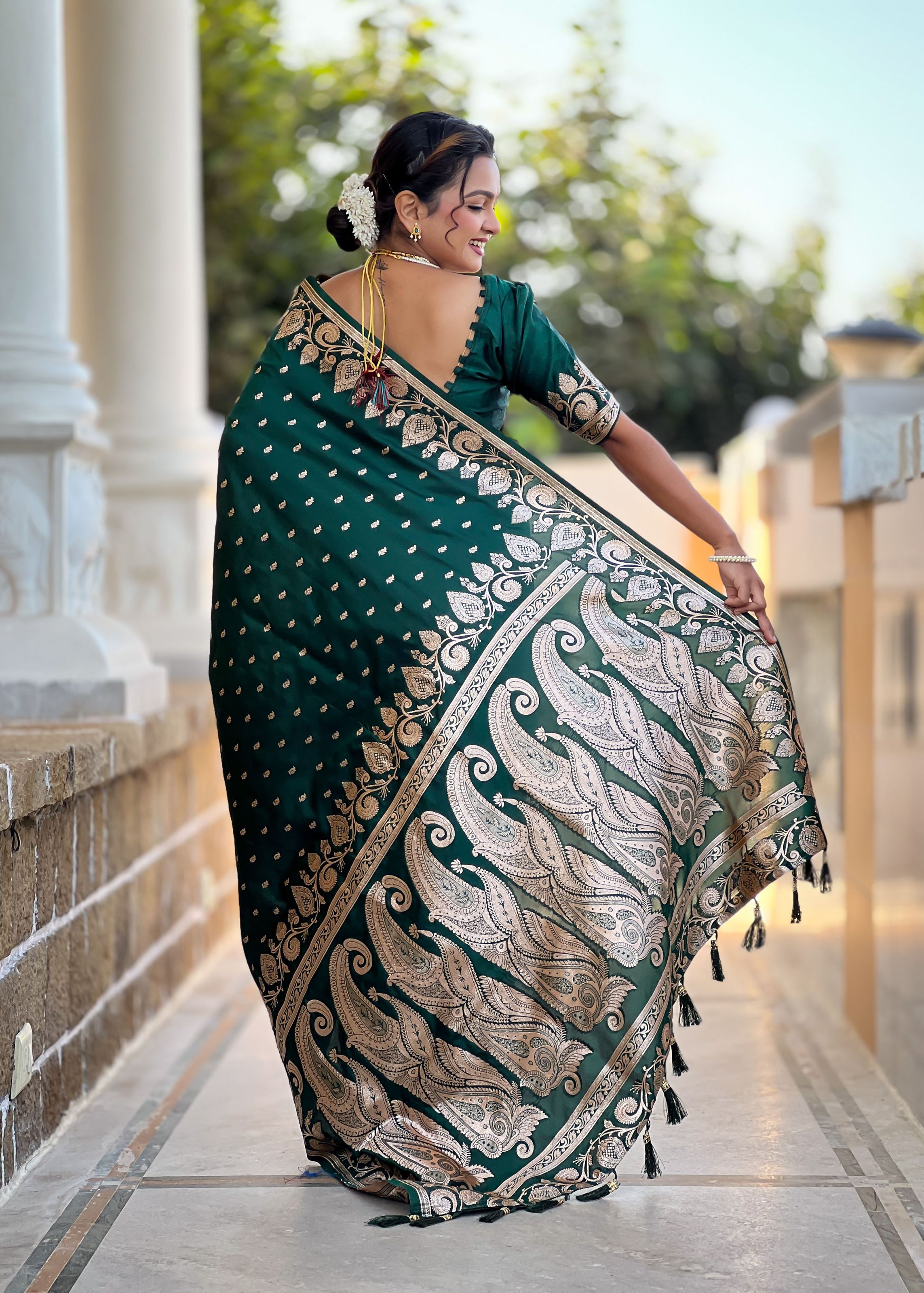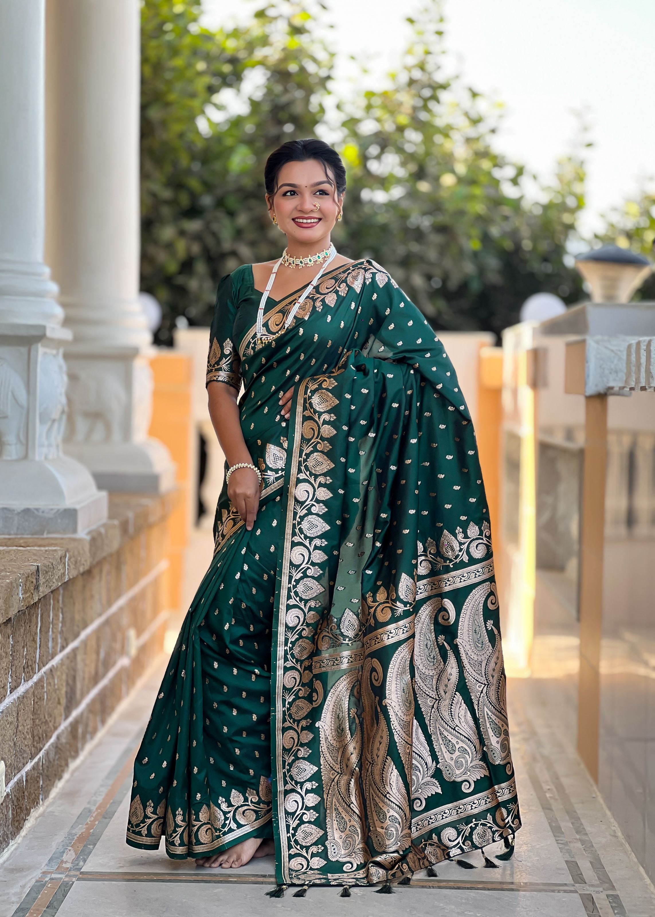Green Banarasi Silk Saree With Woven Jacquard Designer Partywear Saree