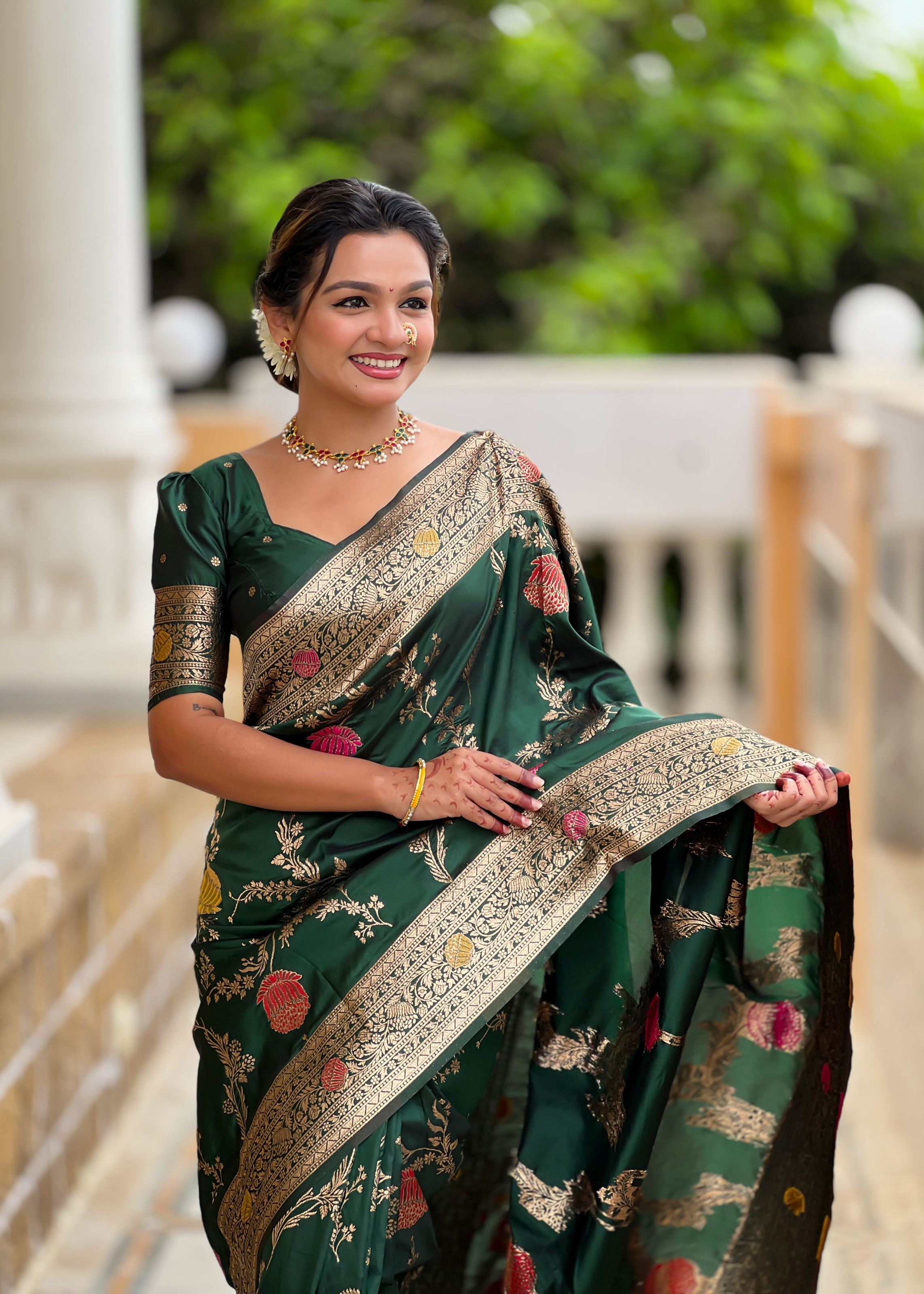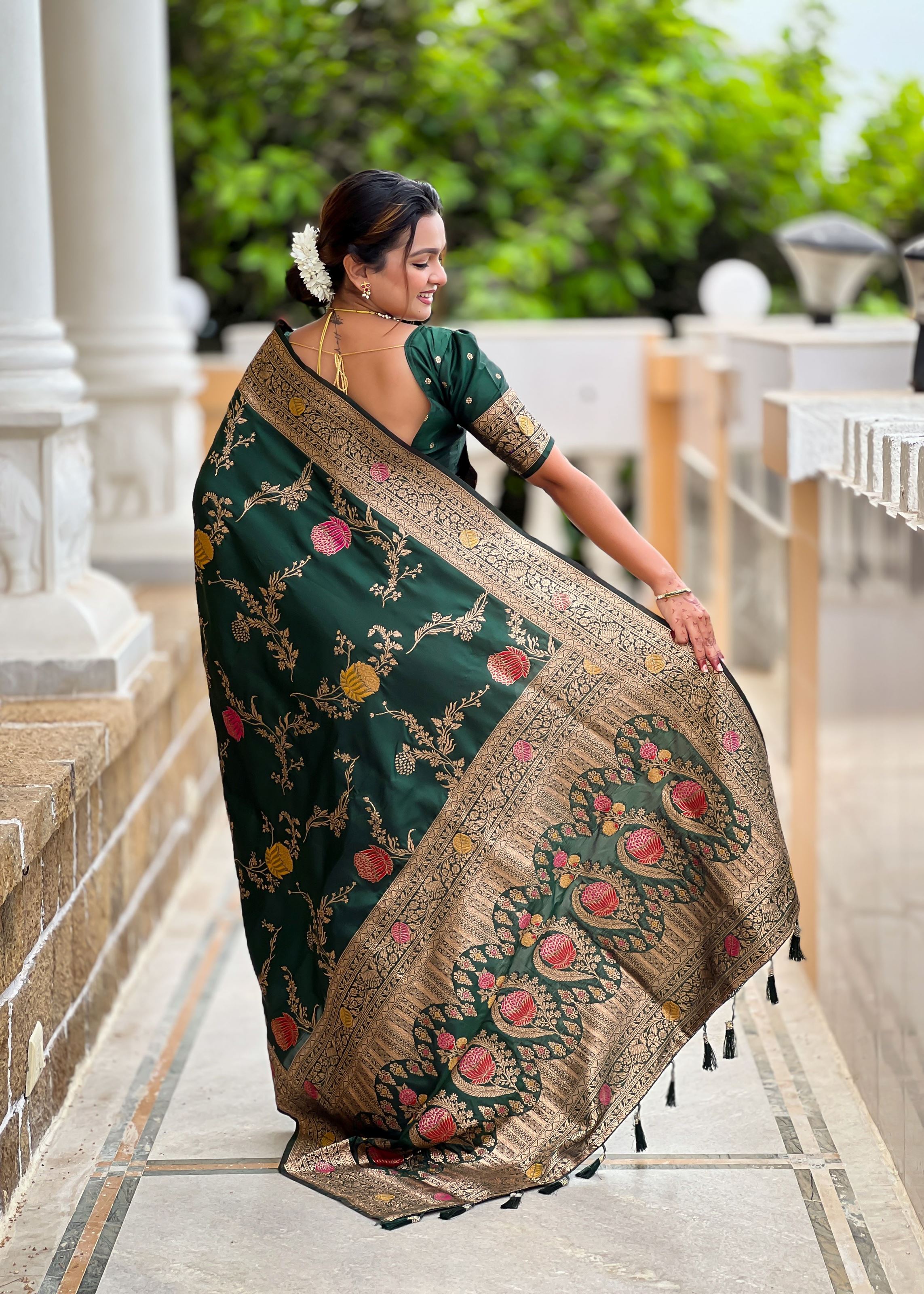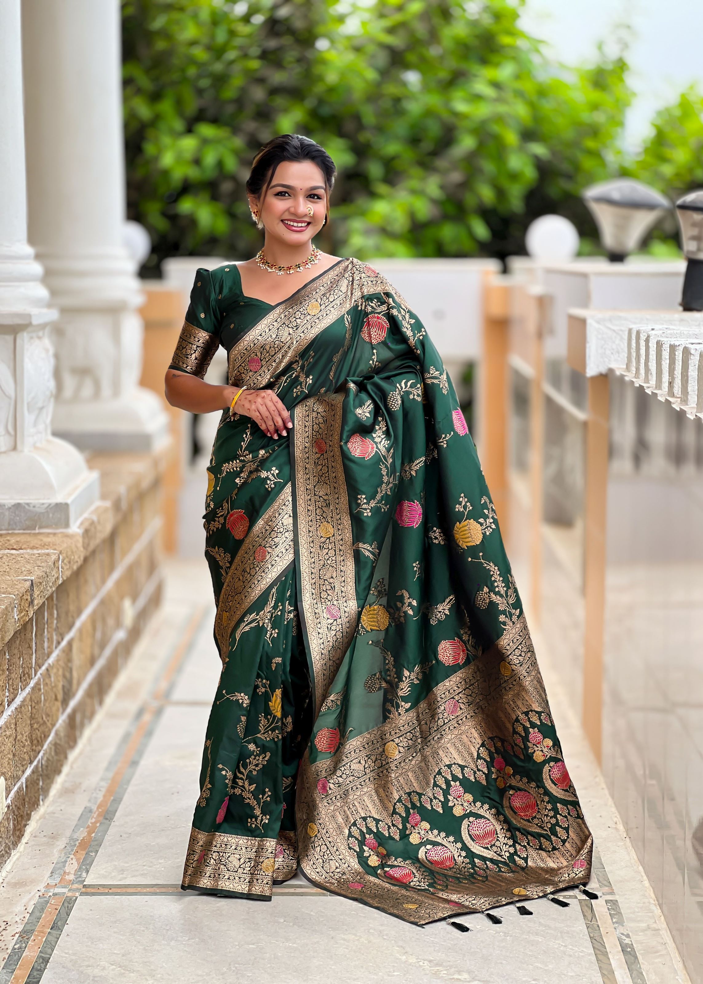 Green Beautiful Banarasi Silk Woven Meenakari Designer Graceful Ethnic Saree
