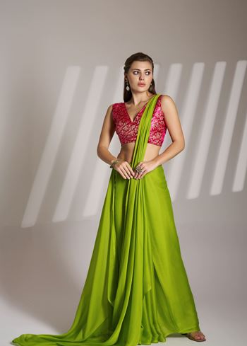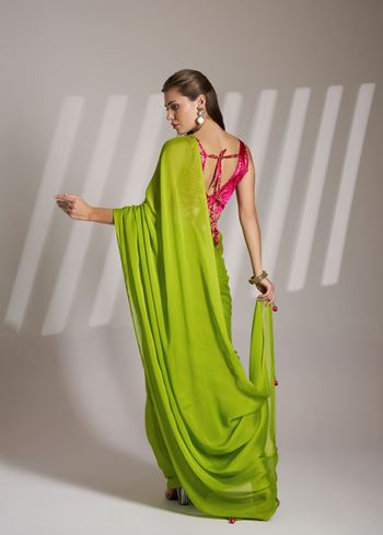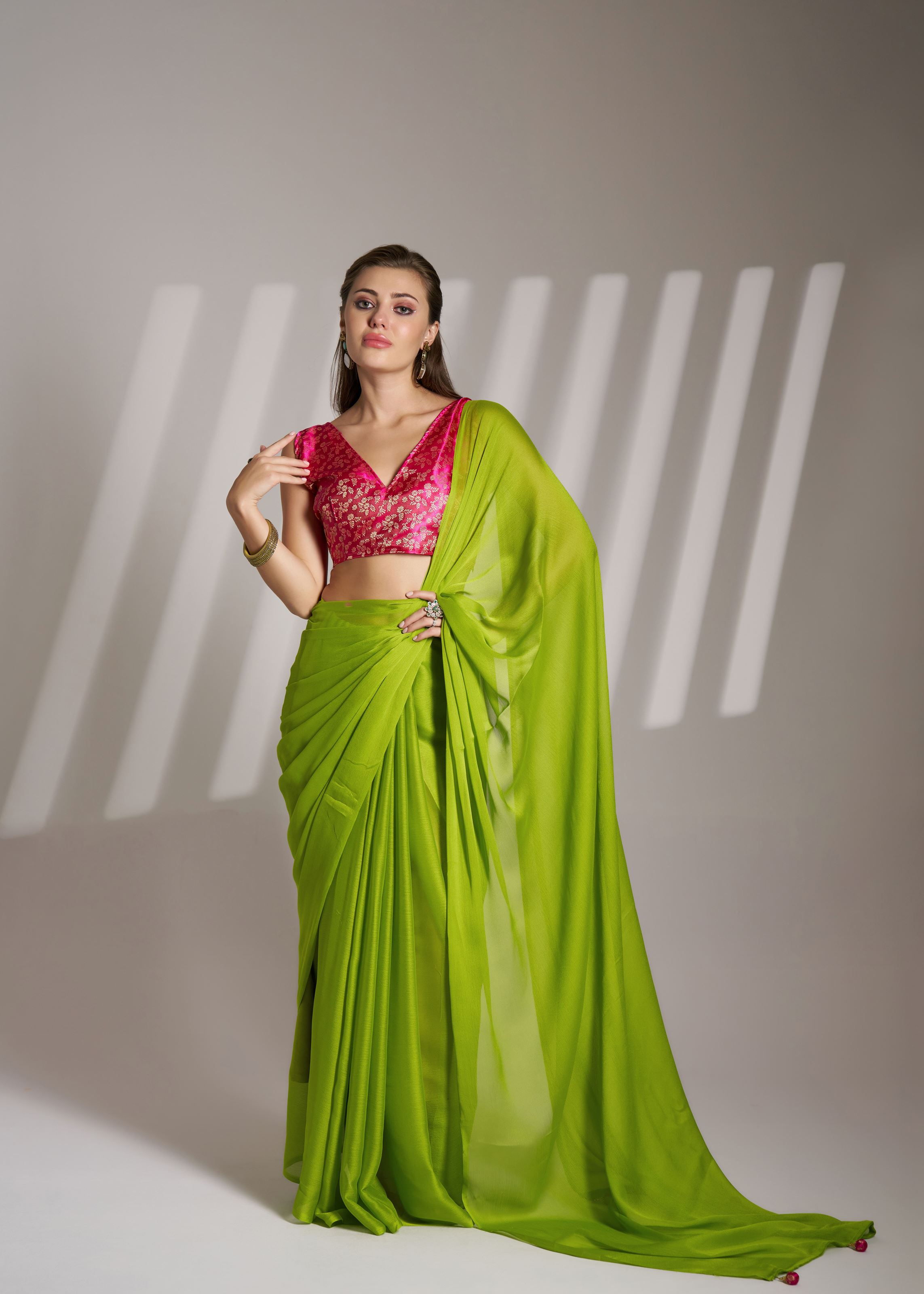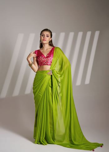 Green Beautiful Bollywood Style Partywear Chiffon Saree