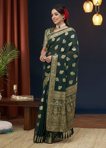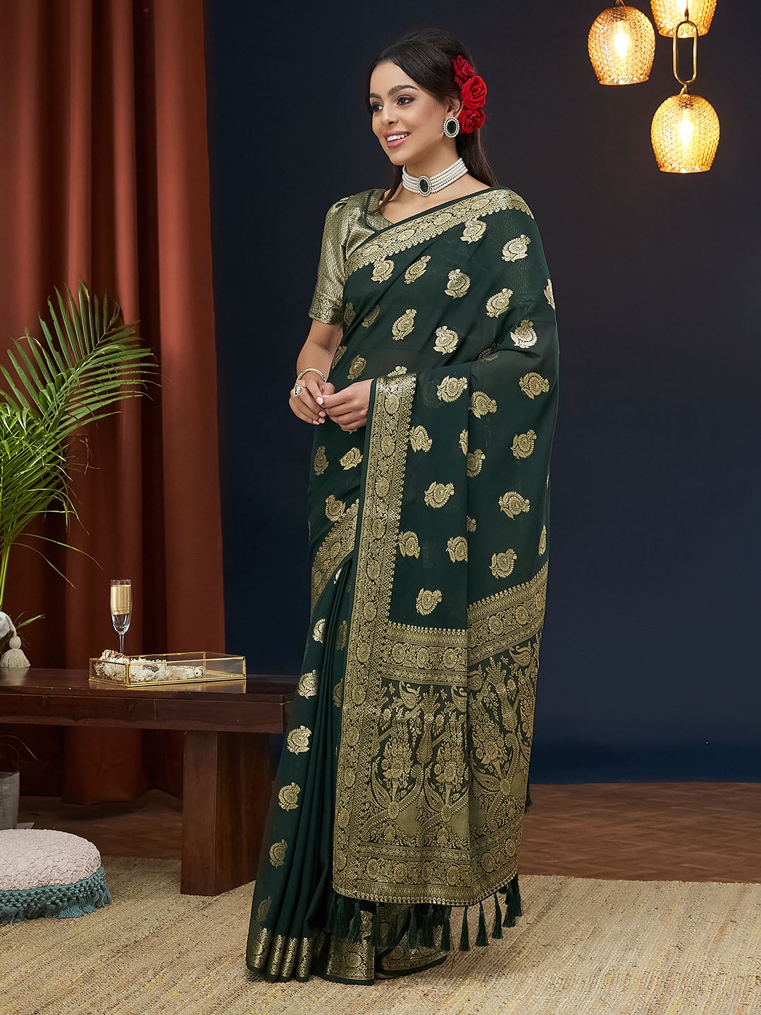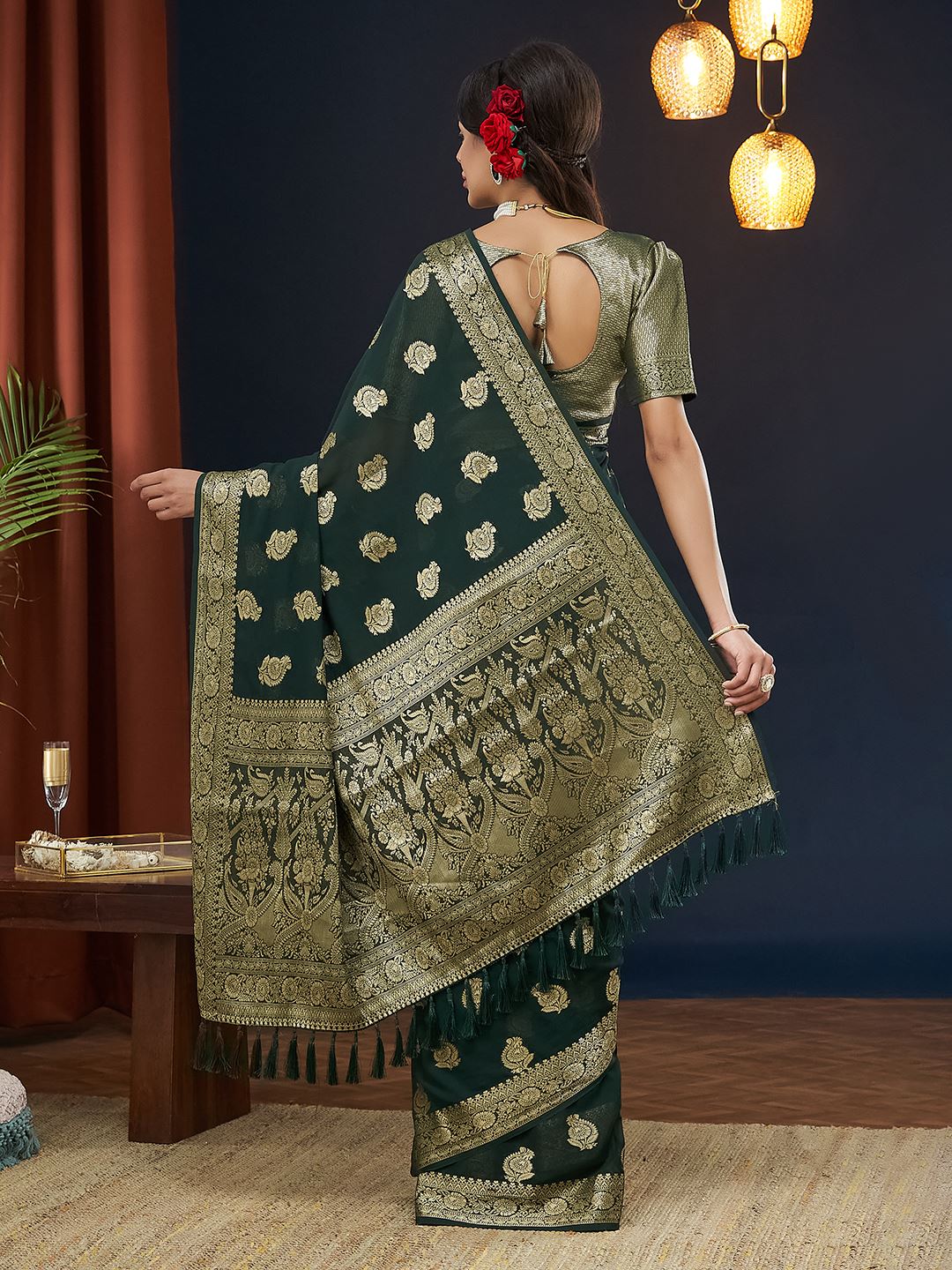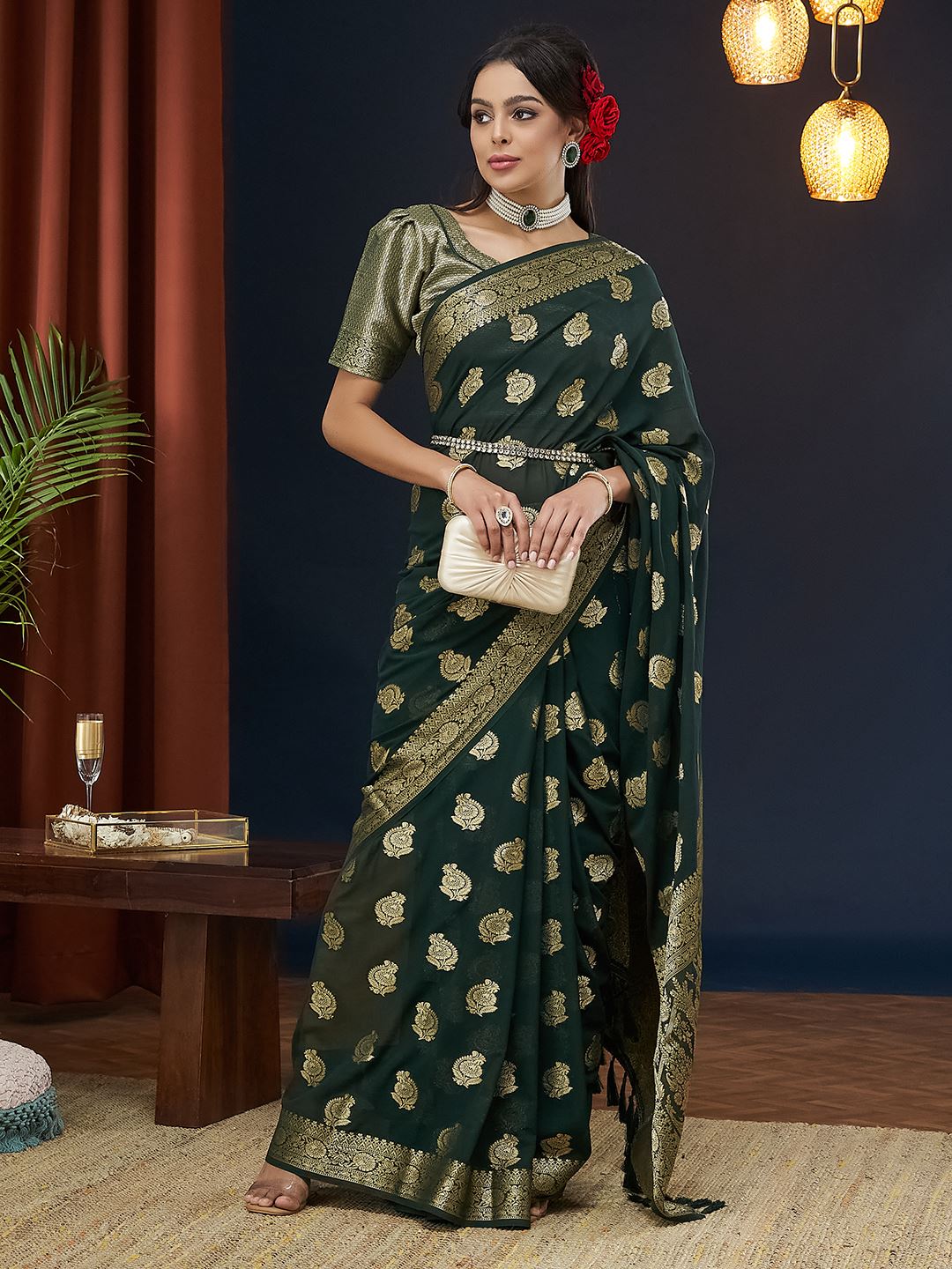Green Colour Georgette Designer Zari Woven Saree For Partywear Looks