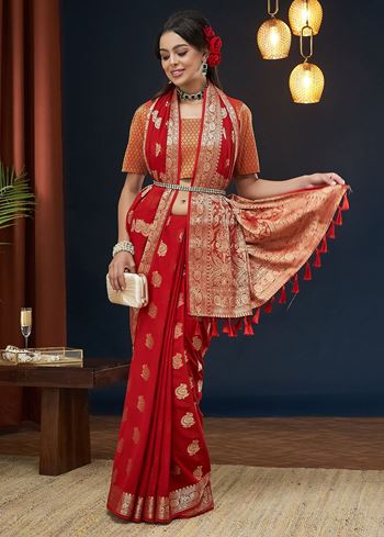 The saree comes with a matching green georgette blouse, completing the ensemble with a coordinated designer appeal. The intricate zari woven work reflects fine craftsmanship, giving the saree a refined look that blends traditional artistry with modern style. Whether styled in a classic pleated drape or a chic contemporary wrap, this saree ensures you look effortlessly glamorous.