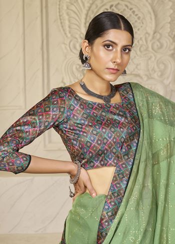 Green Designer Digital Foil Printed Bollywood Style Chiffon Saree