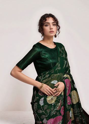 Green Georgette Bollywood Style Sequins Embroidery Work Saree