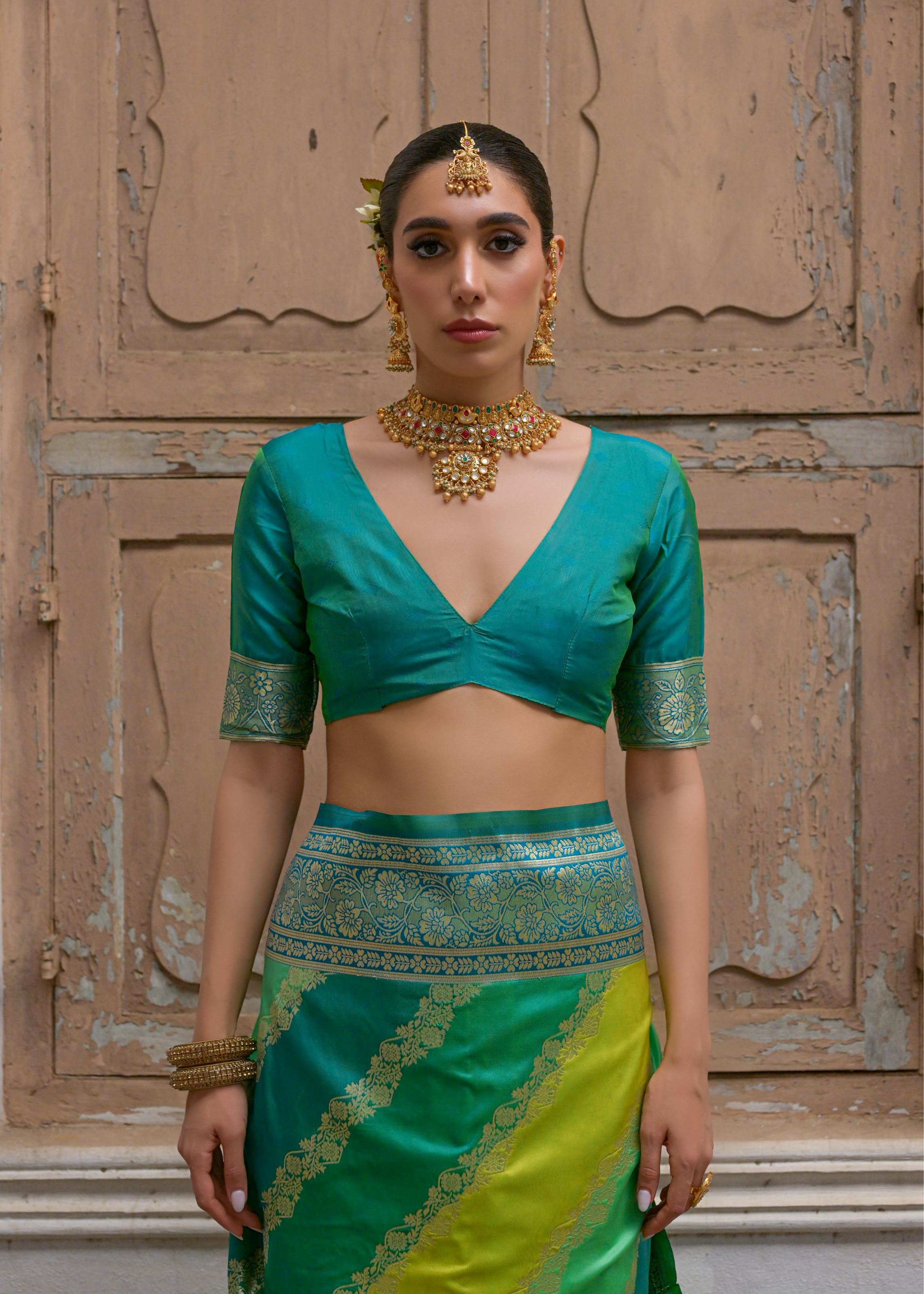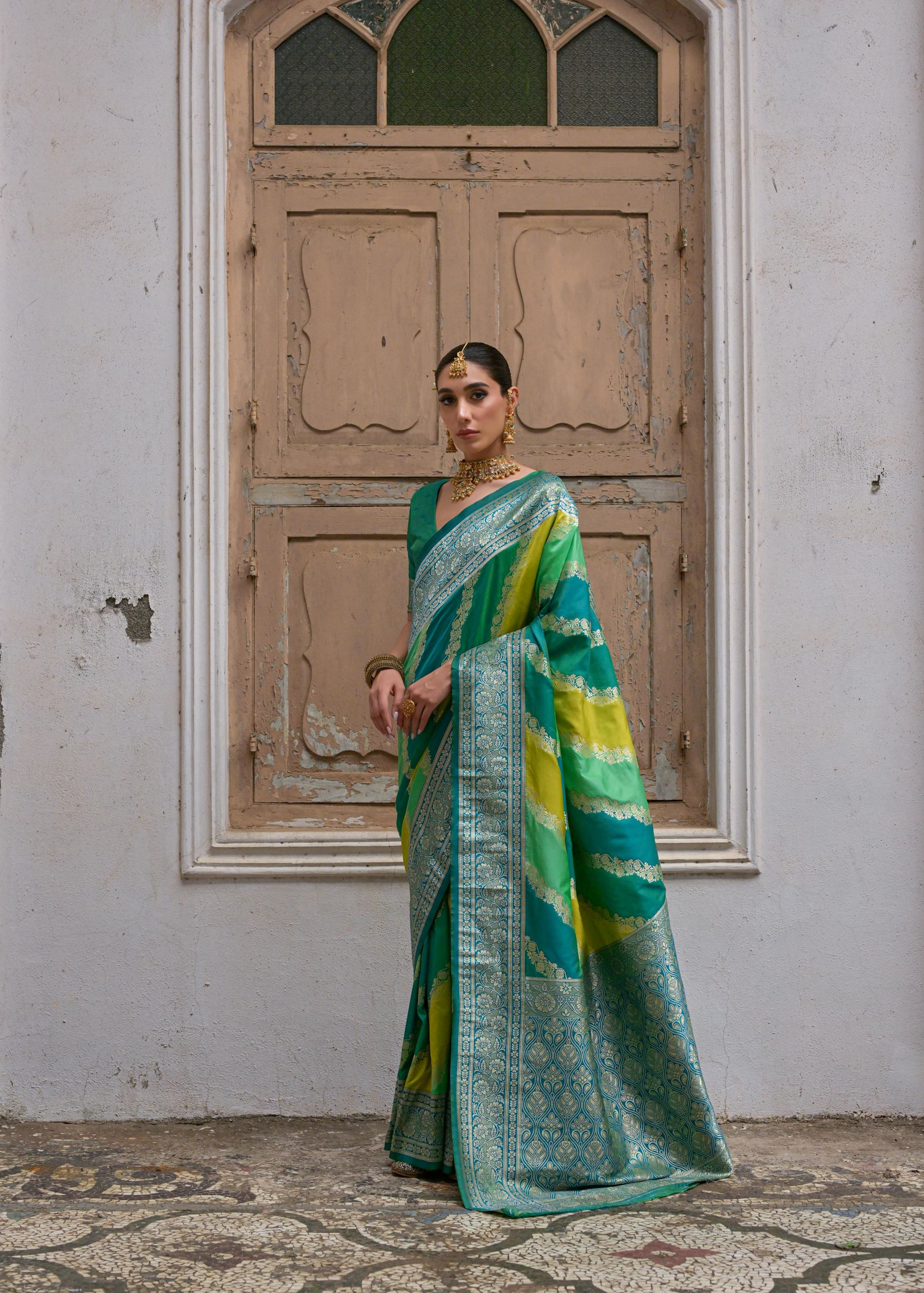 Green Handloom Woven Kadwa Style Designer Banarasi Silk Saree