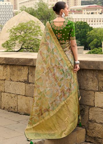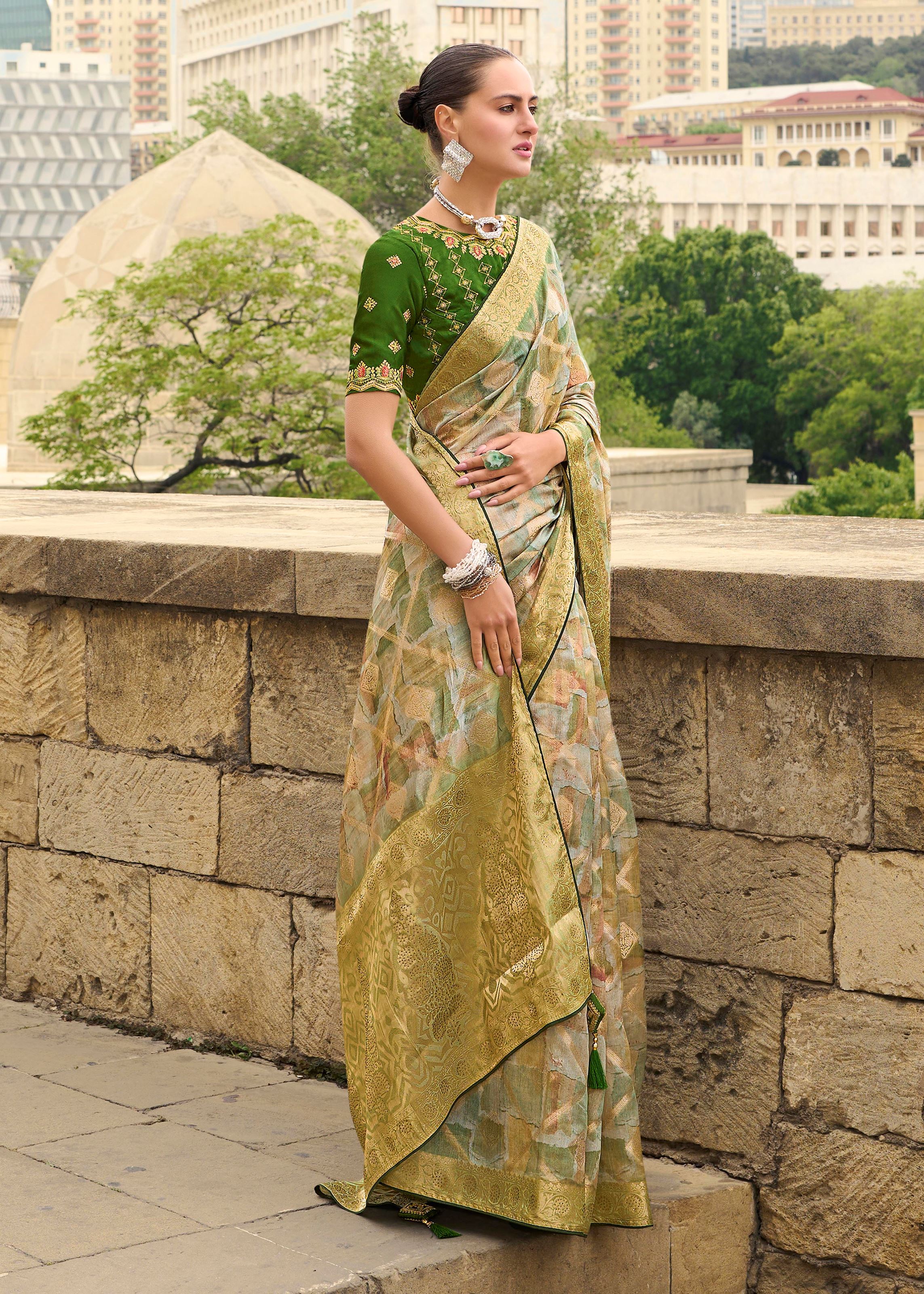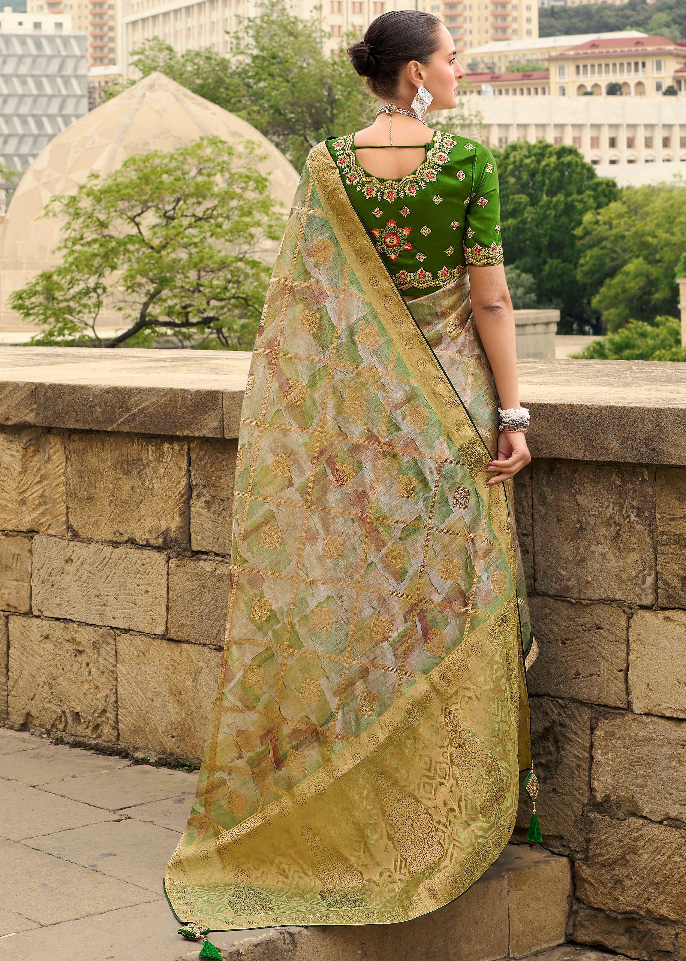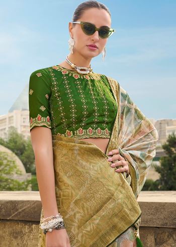 Green Jacquard Silk Woven Saree With Embroidered Blouse