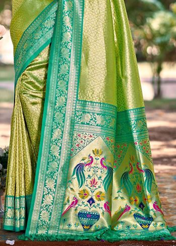 Green Kanjivaram Silk Saree With Minimalist Elegance and Classy Drape