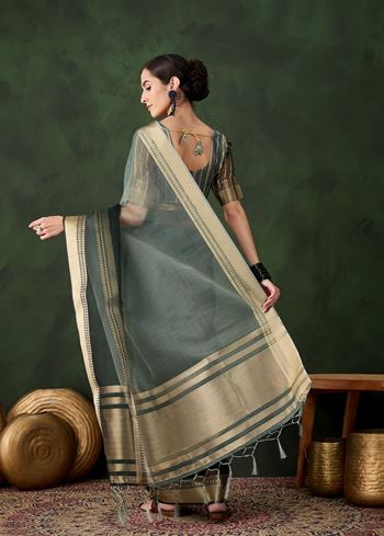 Green Khadi Organza Fabric Beautiful Woven Jacquard Designer Saree