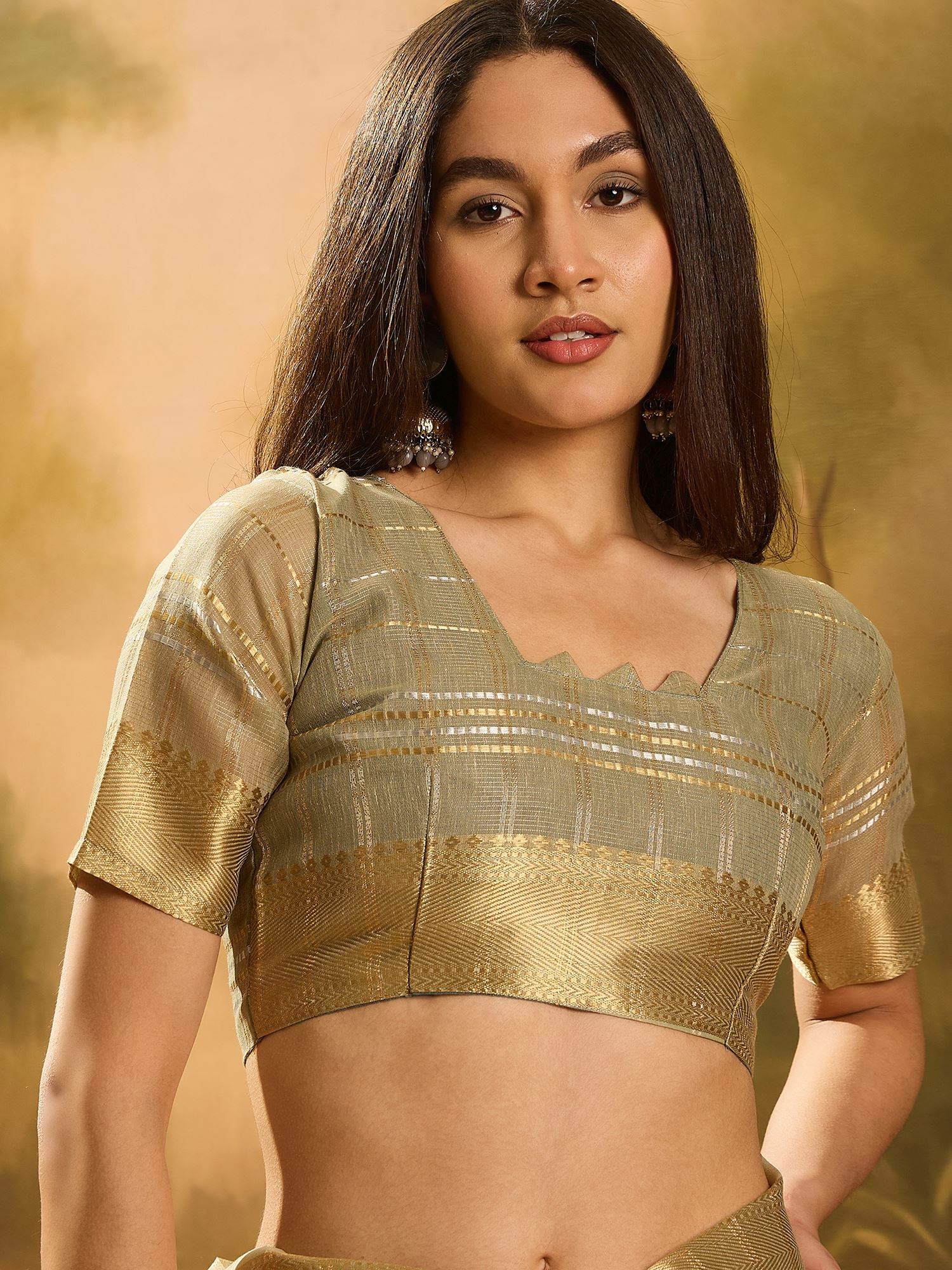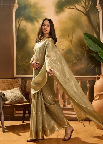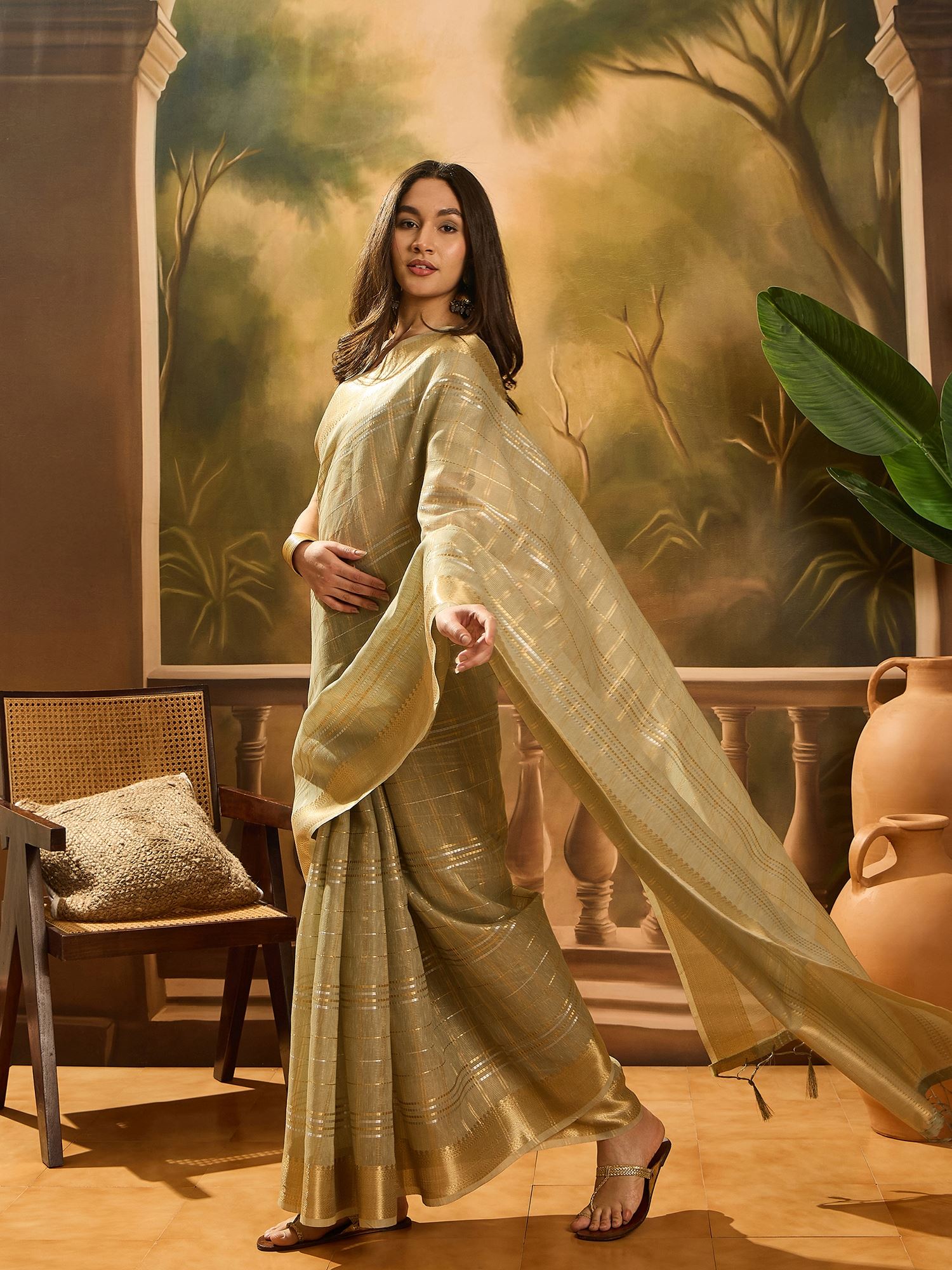 Green Khadi Organza Woven Jacquard Designer Ethnic Traditional Festive Wear Saree