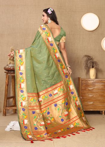 Green Paithani Silk Woven Meenakari Paithani Designer Saree
