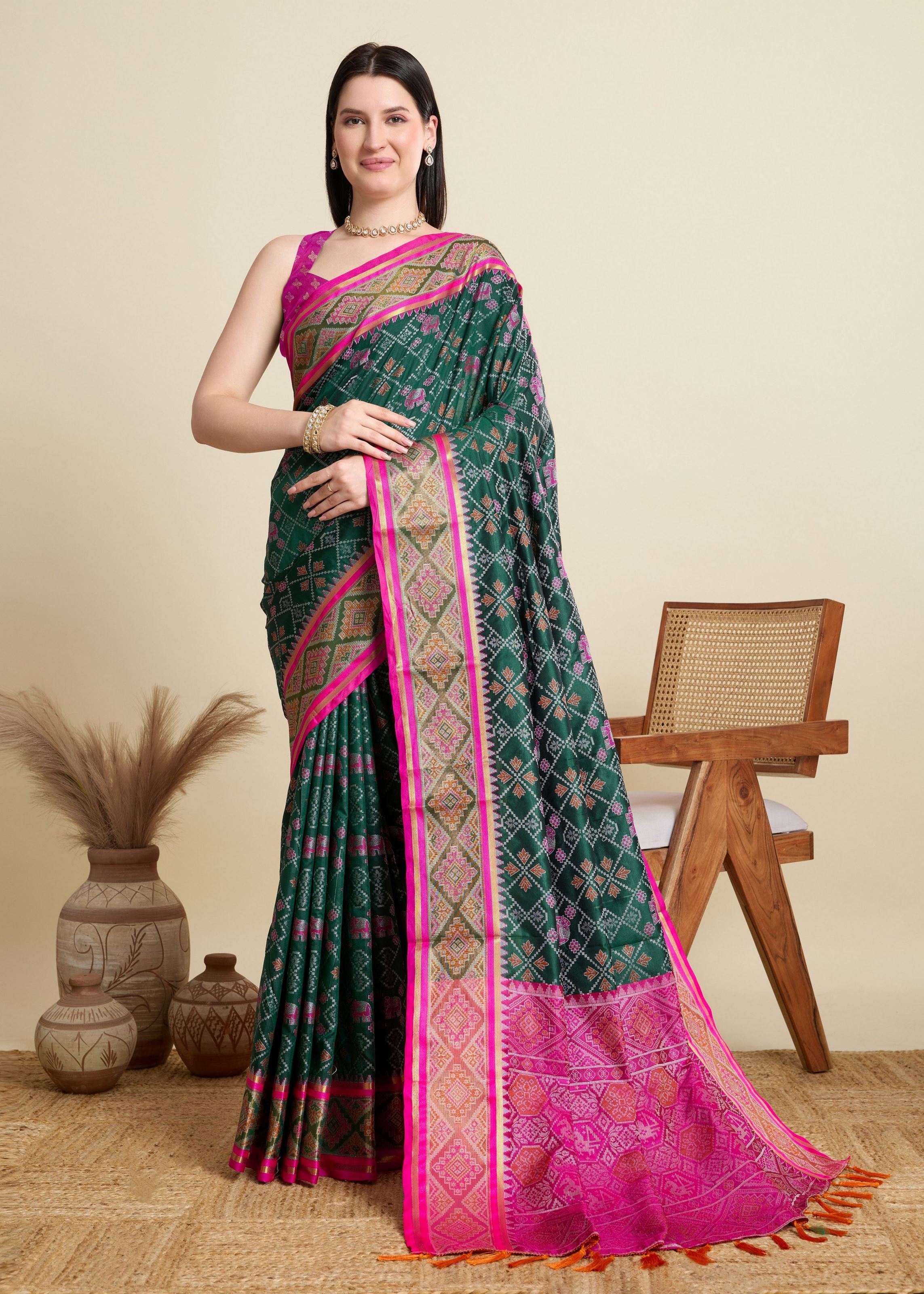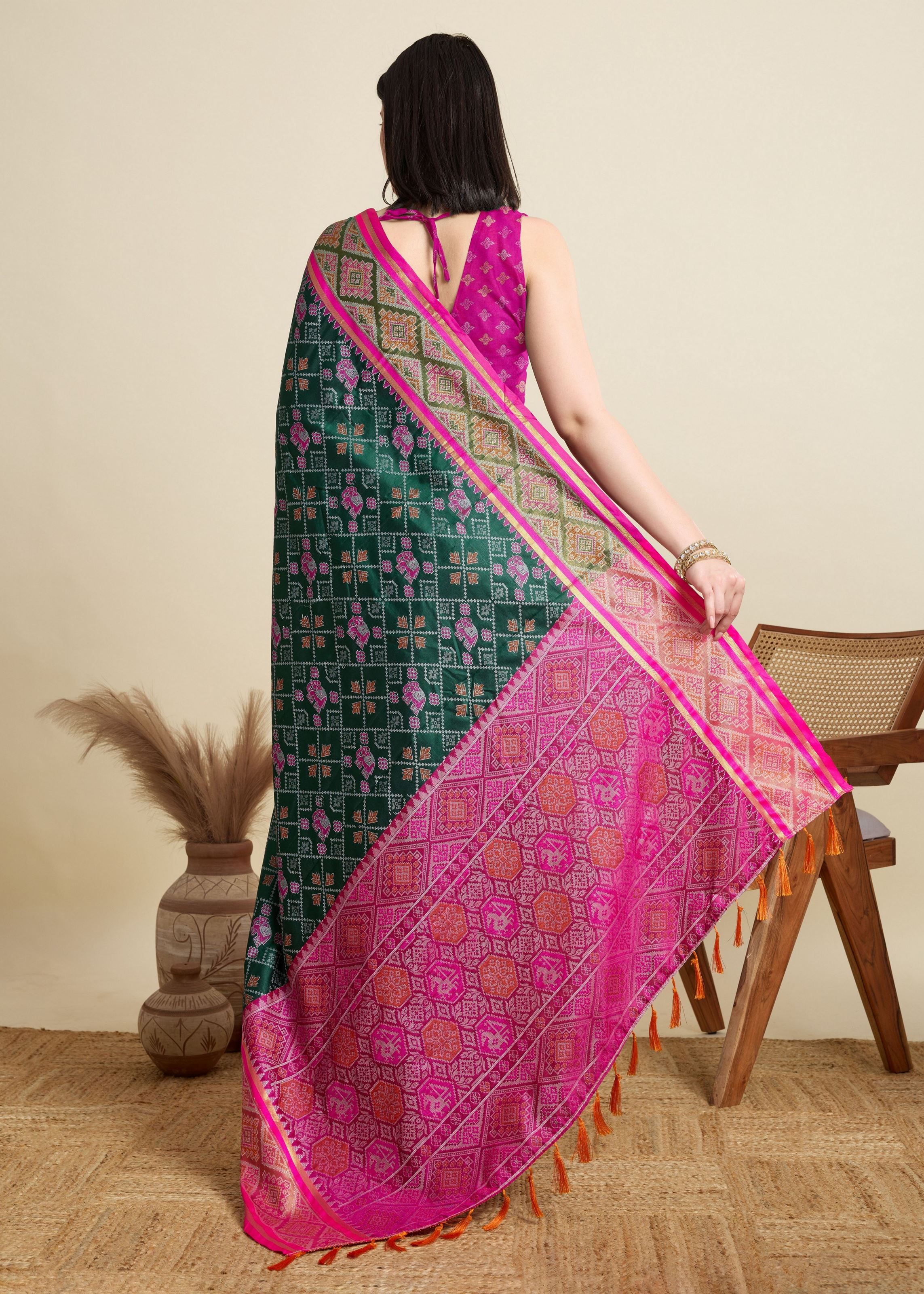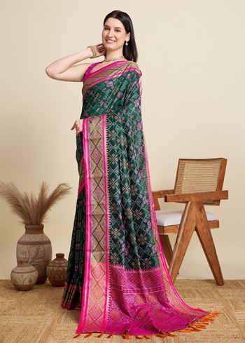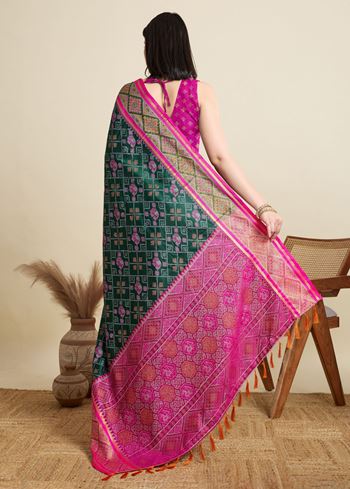 Green Patola Silk Woven Meenakari Designer Partywear Saree