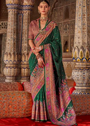 Green PV Silk Saree With Luxury Print and Glory Finish