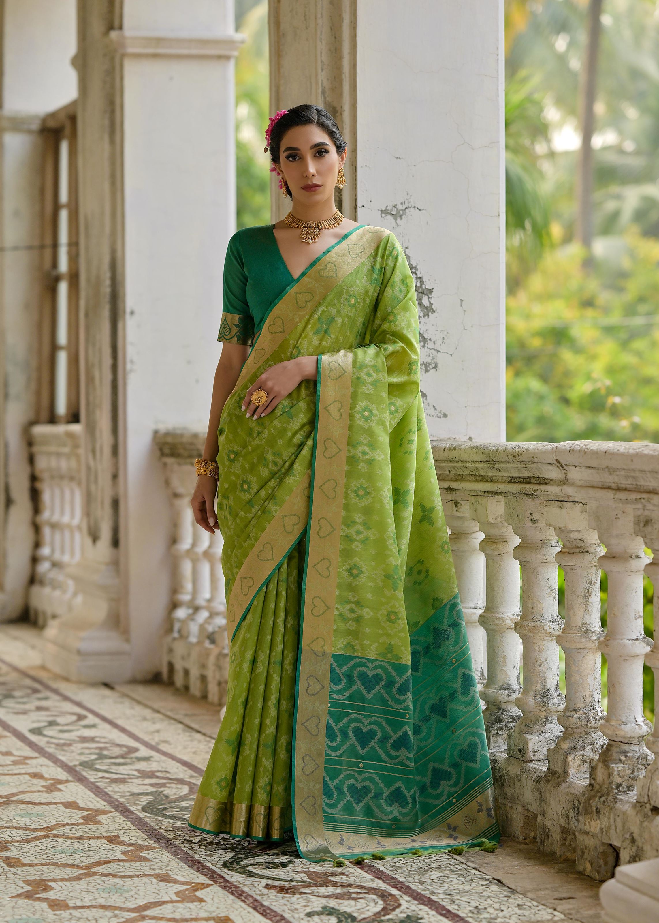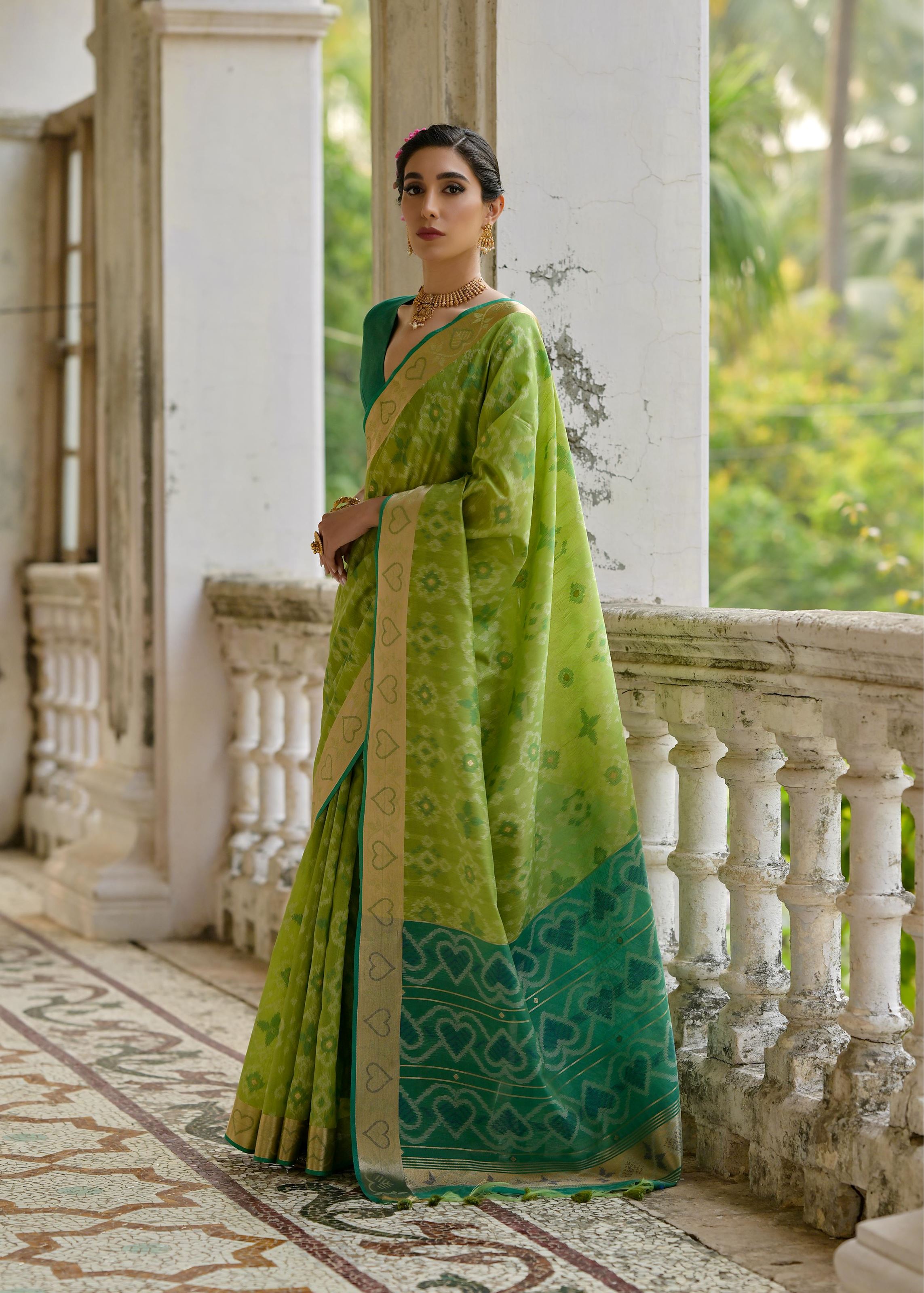 Green Raw Silk Woven Ikat Designer Ceremonial Saree