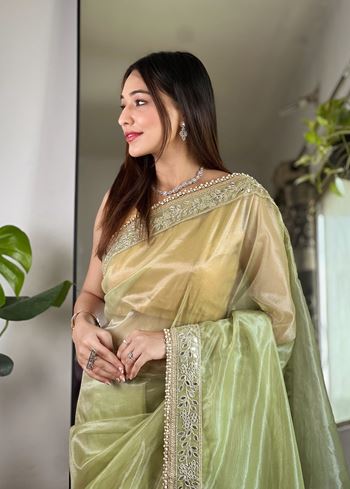 Green Silver Tissue Silk Beautiful Sequins And Jari Embroidery Work Saree