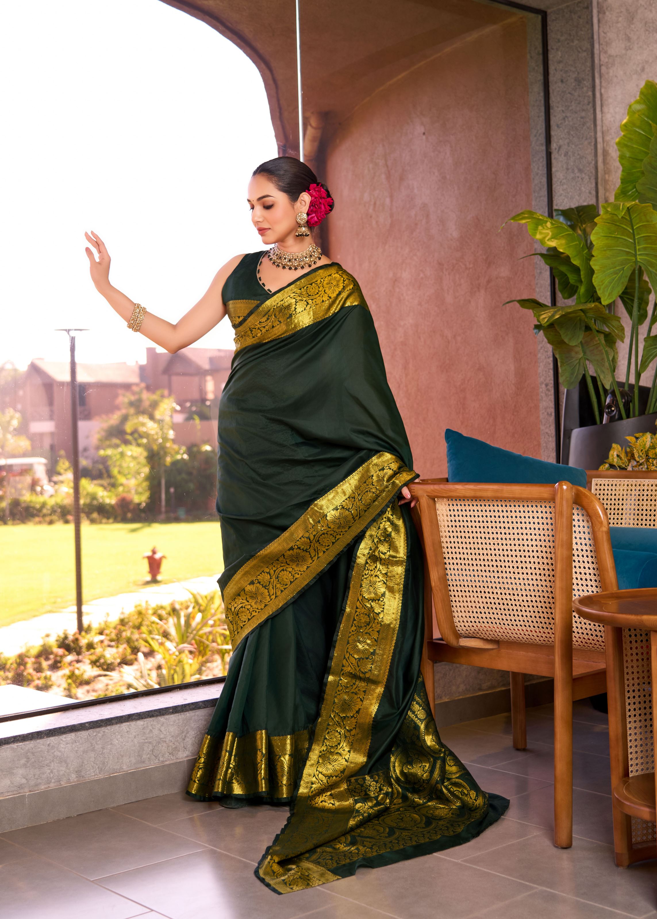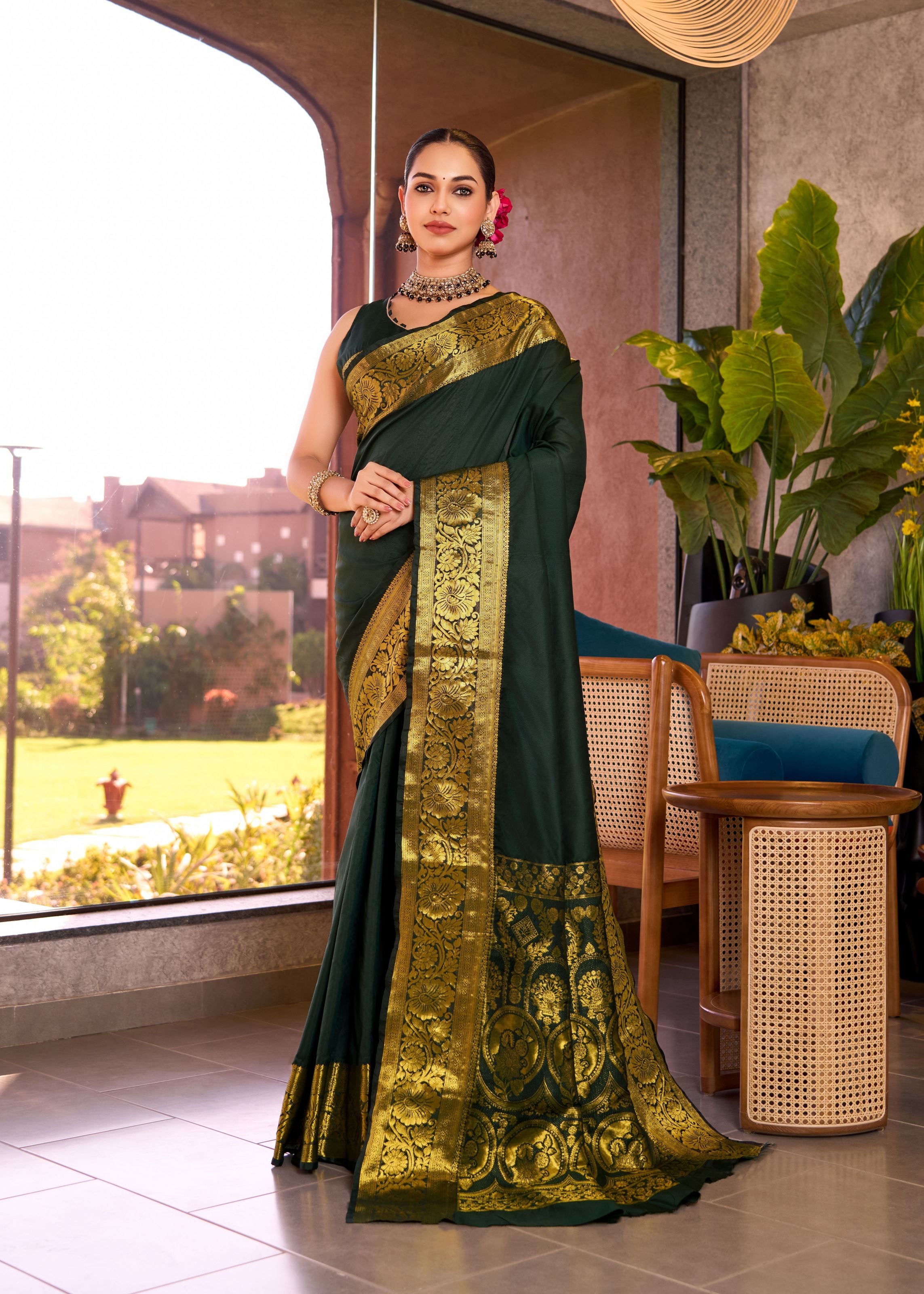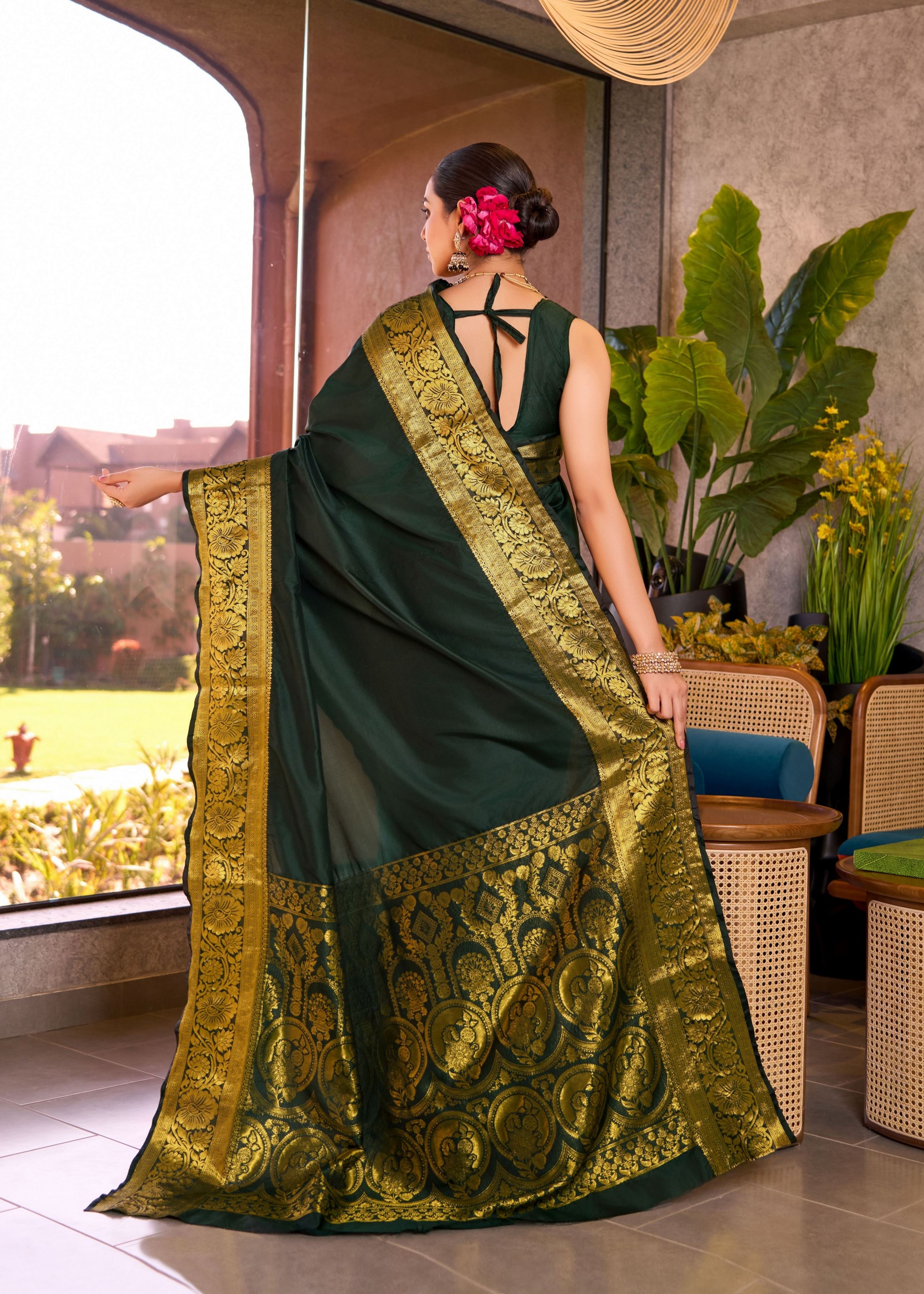 Green Soft Silk Woven Jari Designer Heavy Partywear Saree