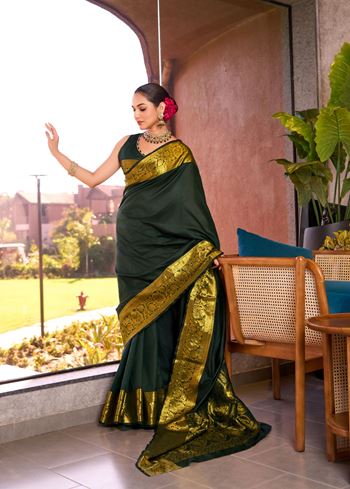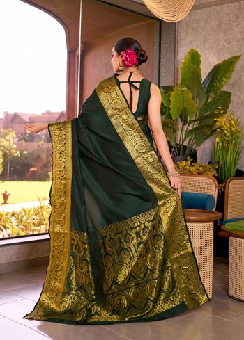 Accompanied by a matching green silk blend blouse, the ensemble offers styling versatility. The blouse can be tailored to your preference, whether you wish to keep it classic or modern, ensuring it complements the saree seamlessly.Pair this saree with traditional gold jewelry, antique Kundan sets, or even contrasting stone-studded ornaments to enhance its beauty. Add embellished footwear and a statement clutch for the perfect finishing touch.This green woven jari soft silk saree is the ultimate choice for women who desire luxury, tradition, and elegance all in one drape.