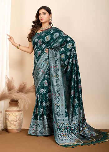 Green Soft Silk Woven Meenakari Designer Ceremonial Partwear Saree