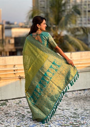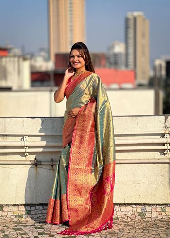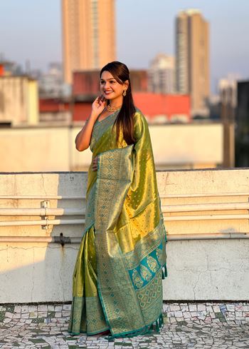 Green Tissue Silk Heavy Woven Jari Designer Ethnic Ceremonial Saree