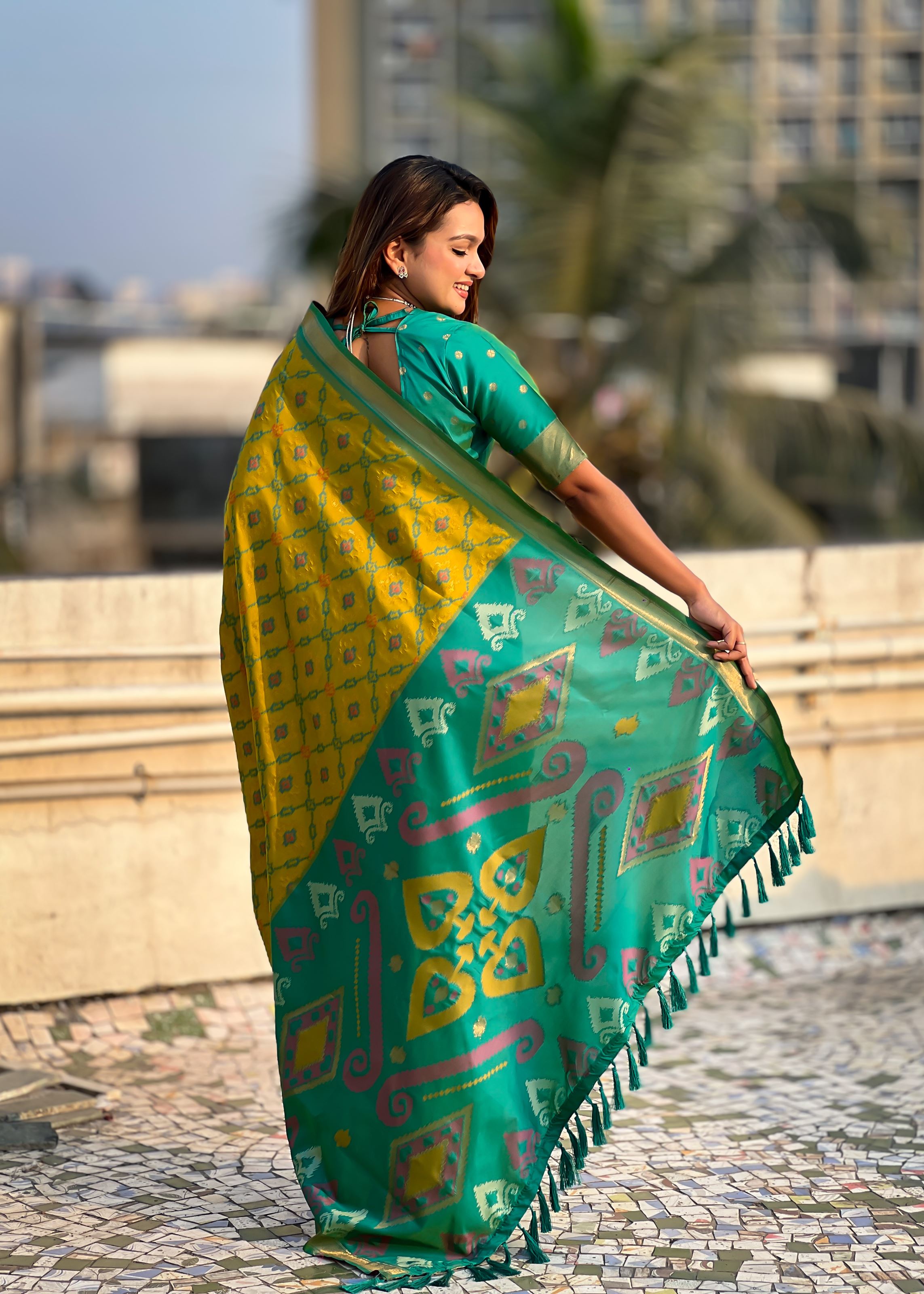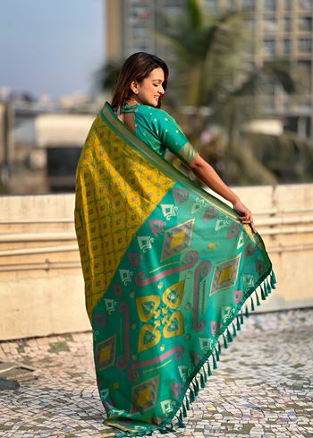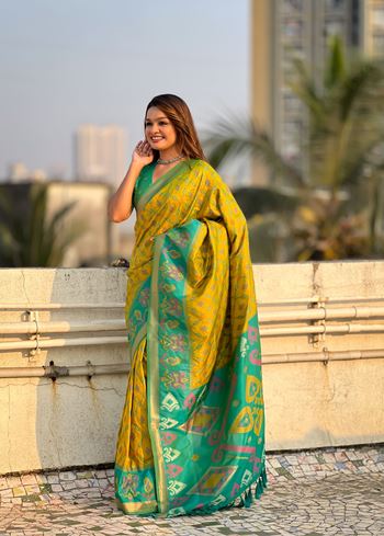 Green Woven Meenakari Ikkat Designer Patola Silk Ceremonial Saree