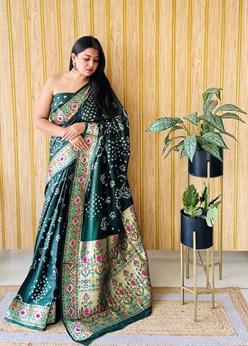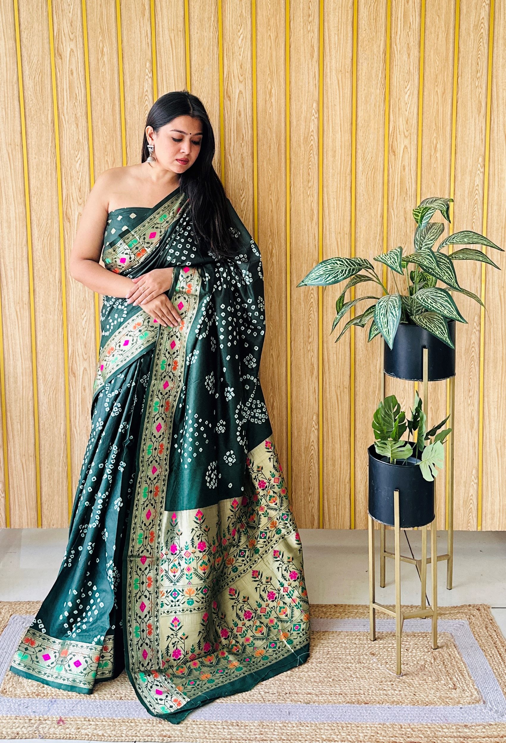 Green Woven Paithani Designer with Bandhej Printed Beautiful Ceremonial Saree