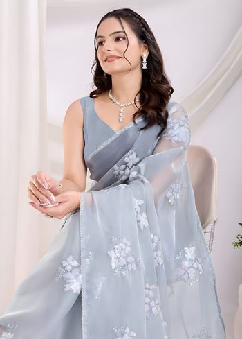 Grey Zimmy chu Saree with C Pallu multi Embroidery with sequins Work