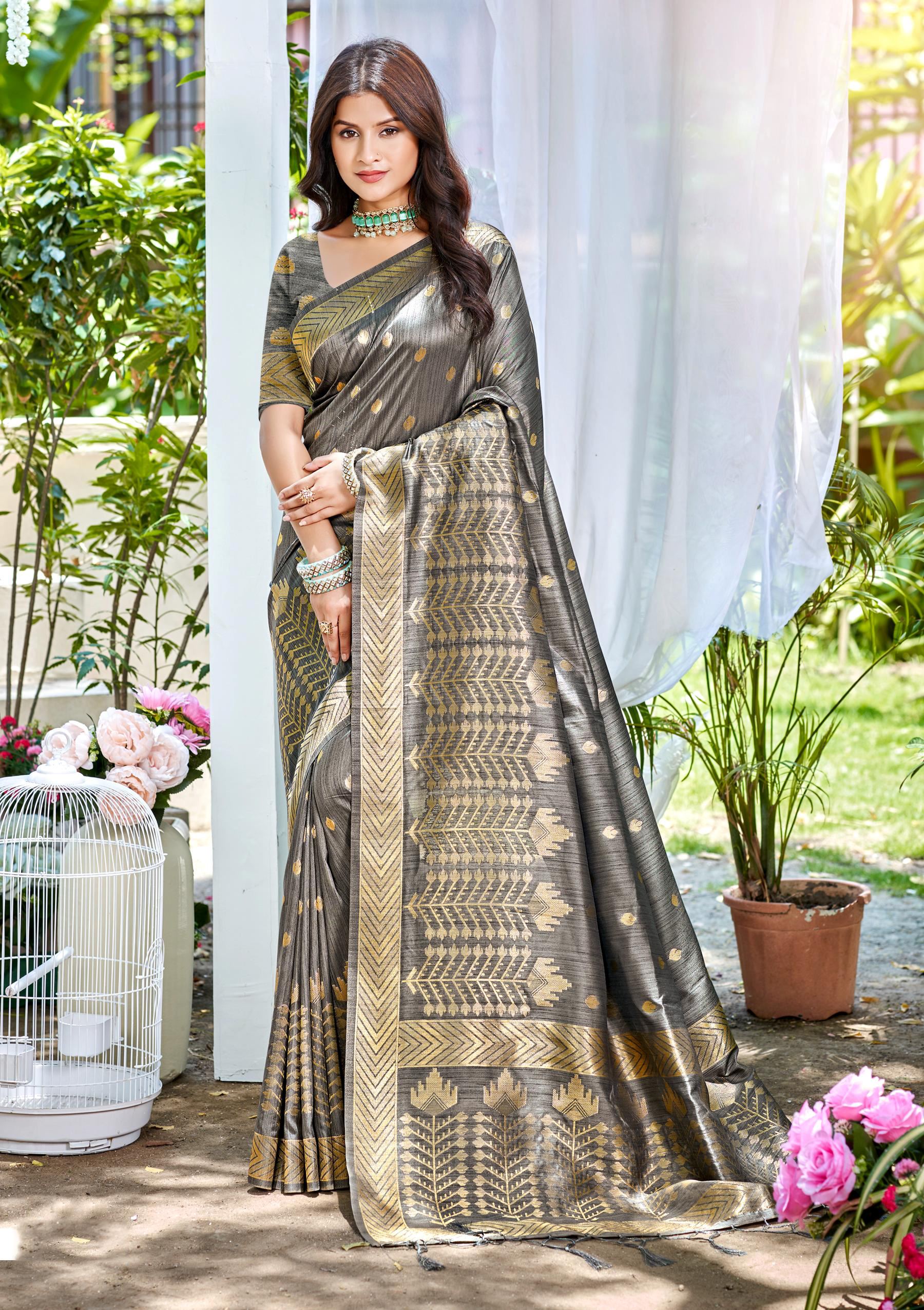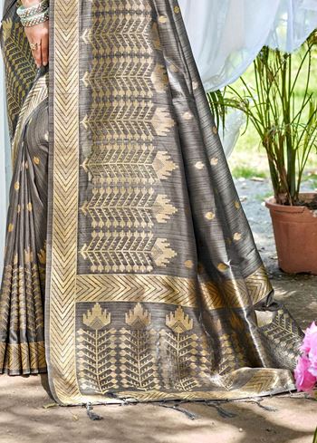 Gray Assam Silk Saree With Classic Drape and Refined Beauty