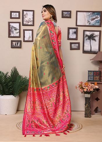 Celebrate timeless elegance with this Grey Banarasi Tissue Silk Woven Patola Designer Saree, exclusively from Aethnofit Fashions. Crafted in premium tissue silk, this saree showcases exquisite Banarasi weaving with intricate Patola-inspired designs, reflecting a blend of traditional artistry and contemporary style. The sophisticated grey shade paired with a contrasting red tissue silk blouse creates a striking and graceful ensemble, perfect for weddings, festive occasions, and cultural celebrations.