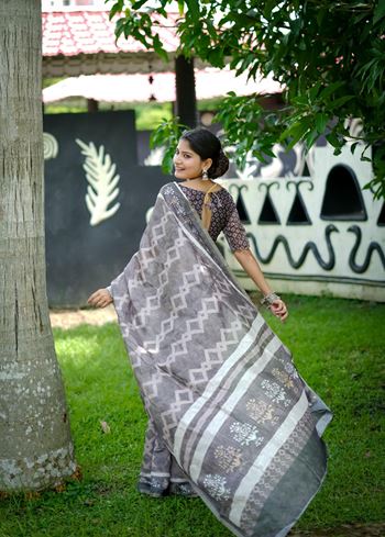 Embrace effortless elegance with the Grey Cotton Digital Printed Saree from Aethnofit Fashions, perfect for casual, festive, and semi-formal occasions. Crafted from premium cotton fabric, this saree features intricate designer digital prints that bring a contemporary charm to traditional attire. The matching grey cotton blouse, carefully printed, completes the ensemble, offering a cohesive and stylish ethnic look.