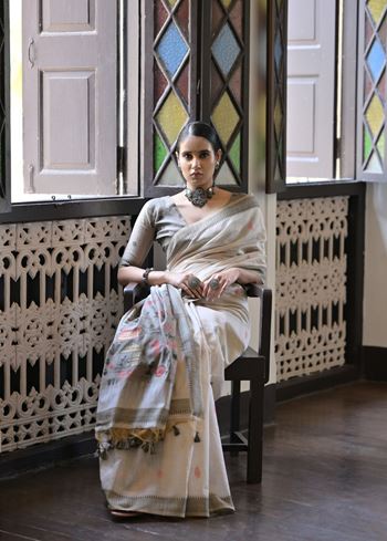 Perfect for festive gatherings, weddings, pujas, and cultural events, this saree combines lightweight comfort with timeless elegance. Its woven artistry reflects the richness of heritage while keeping the design versatile enough for both day and evening functions. Style it with silver jewelry for a classic charm or with statement accessories for a modern festive flair.
