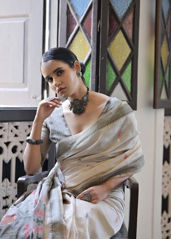 Grey Beautiful Muga Cotton Summer Special Festive Saree