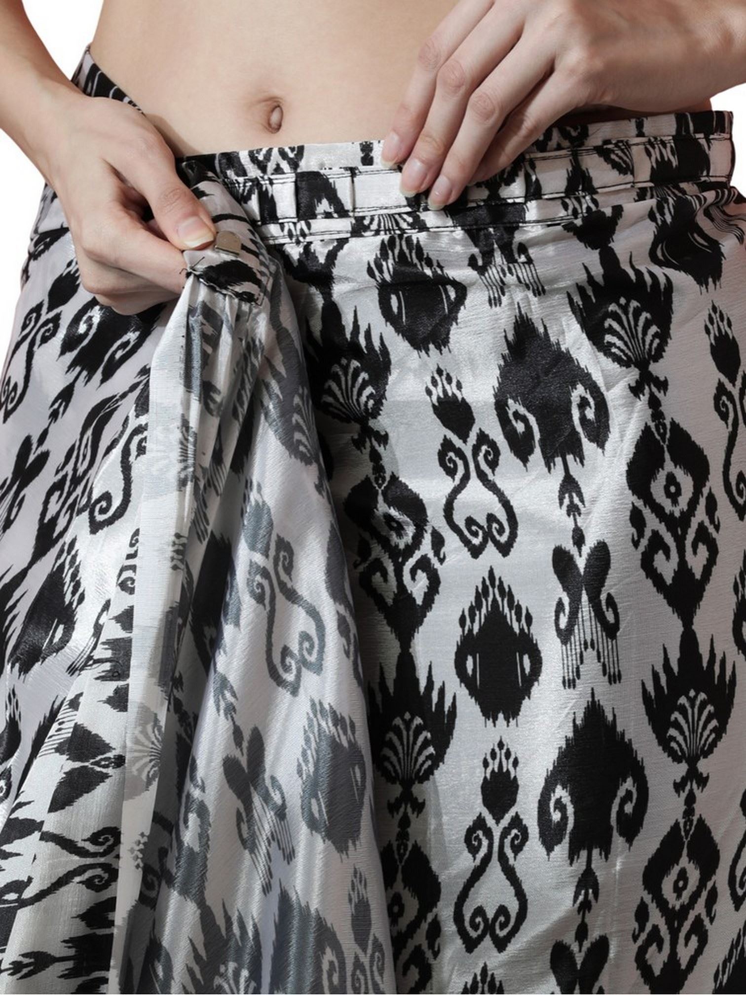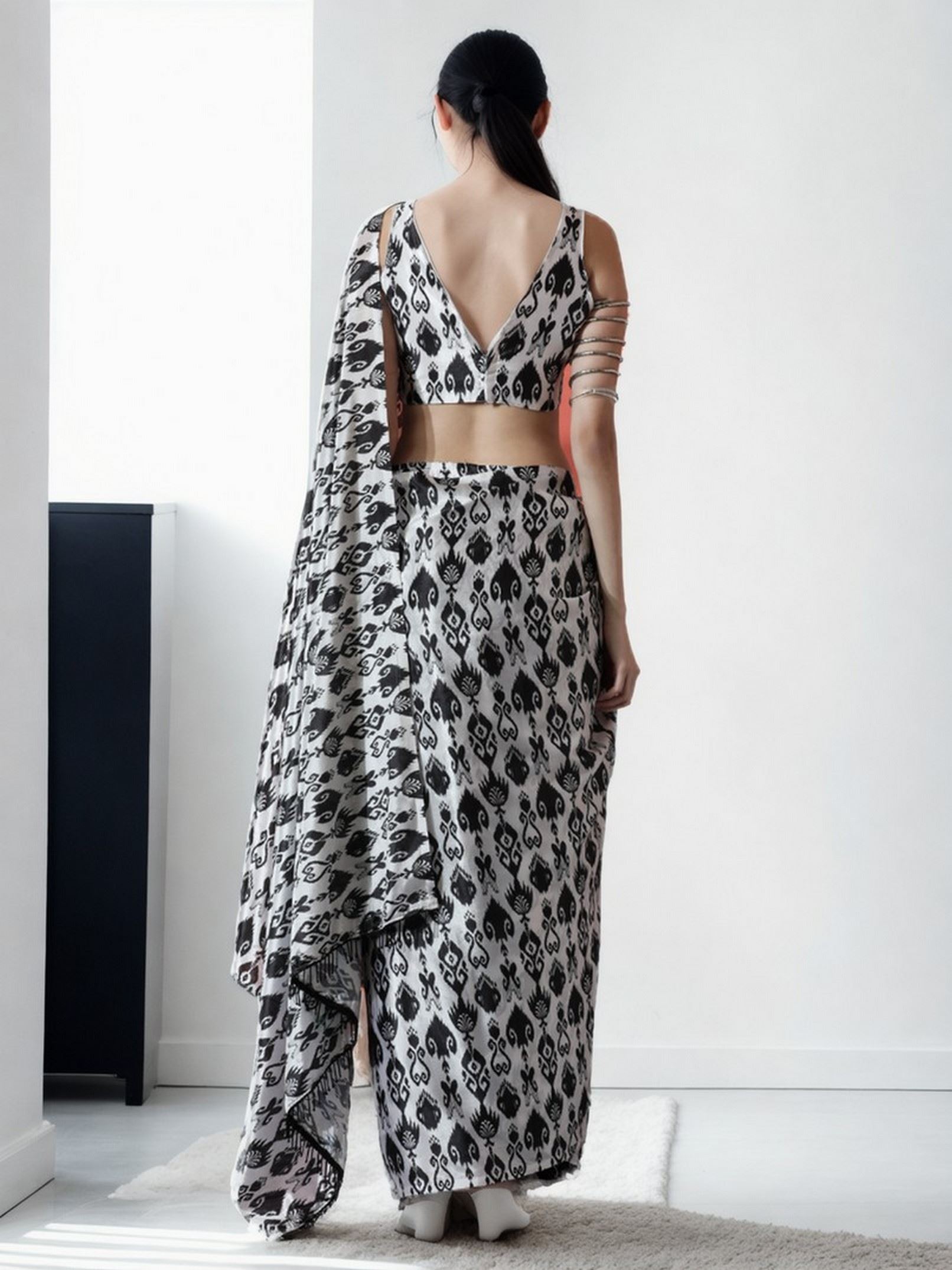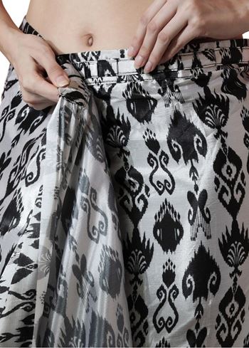 The saree features a delicate lace border, elevating its beauty with refined detailing, making it ideal for parties, festive occasions, cultural gatherings, and evening celebrations. Designed in a ready-to-wear format, this saree eliminates the hassle of draping, with pre-stitched pleats and an easy-to-manage pallu that ensures a flawless look every time.