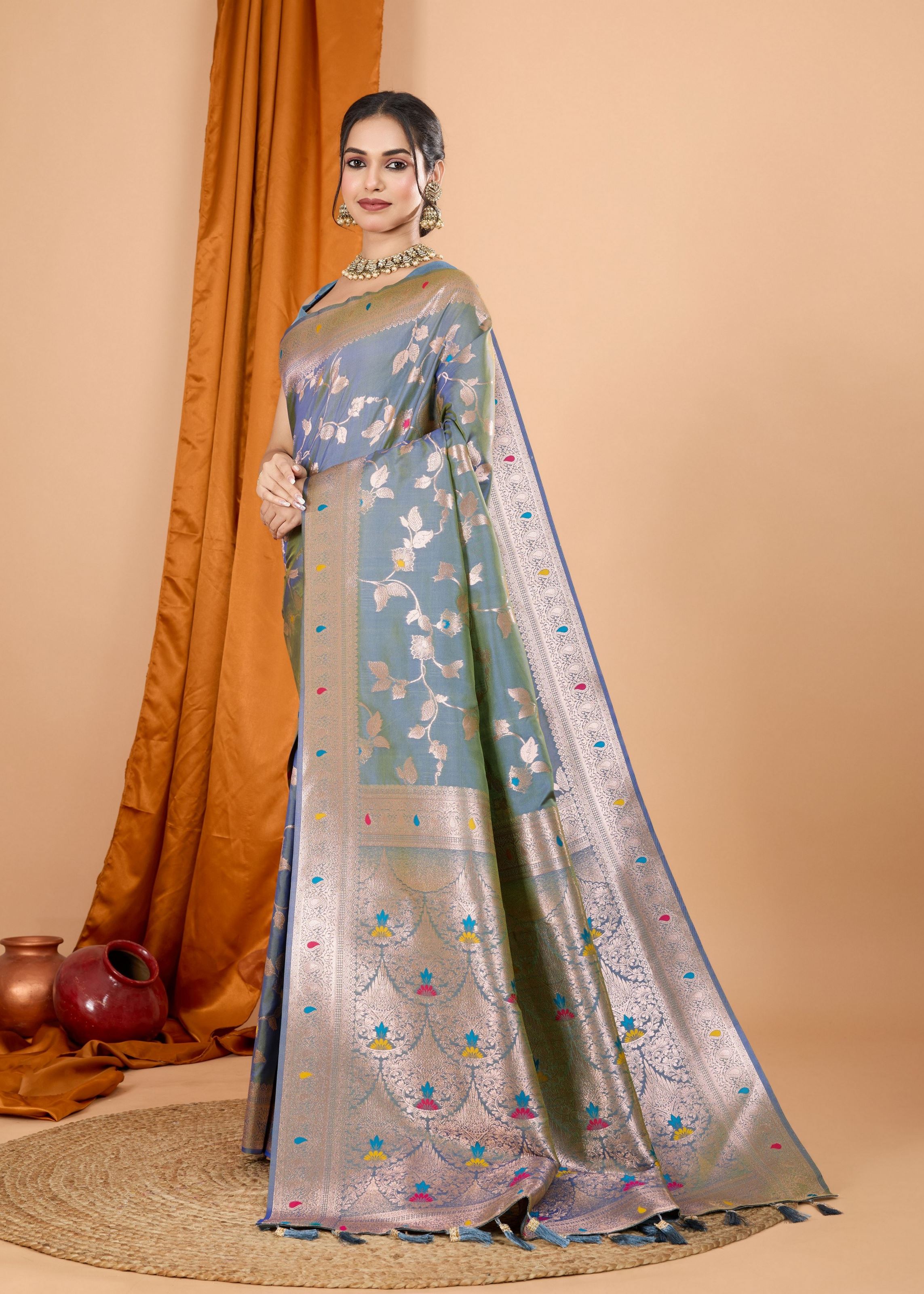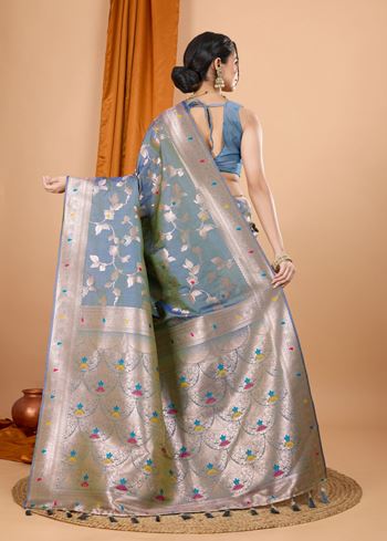 Grey Ethnic Banarasi Silk Saree With Woven Jari Designer Work