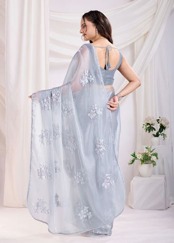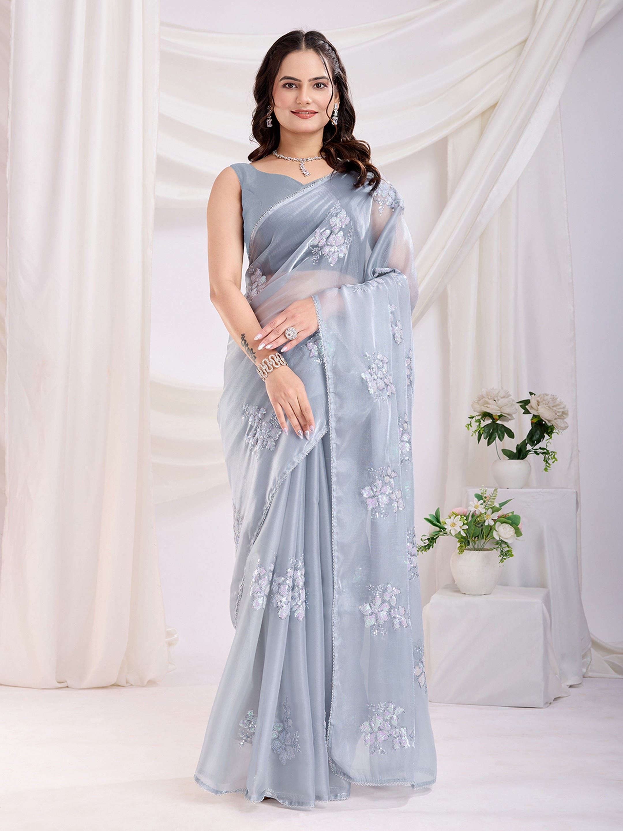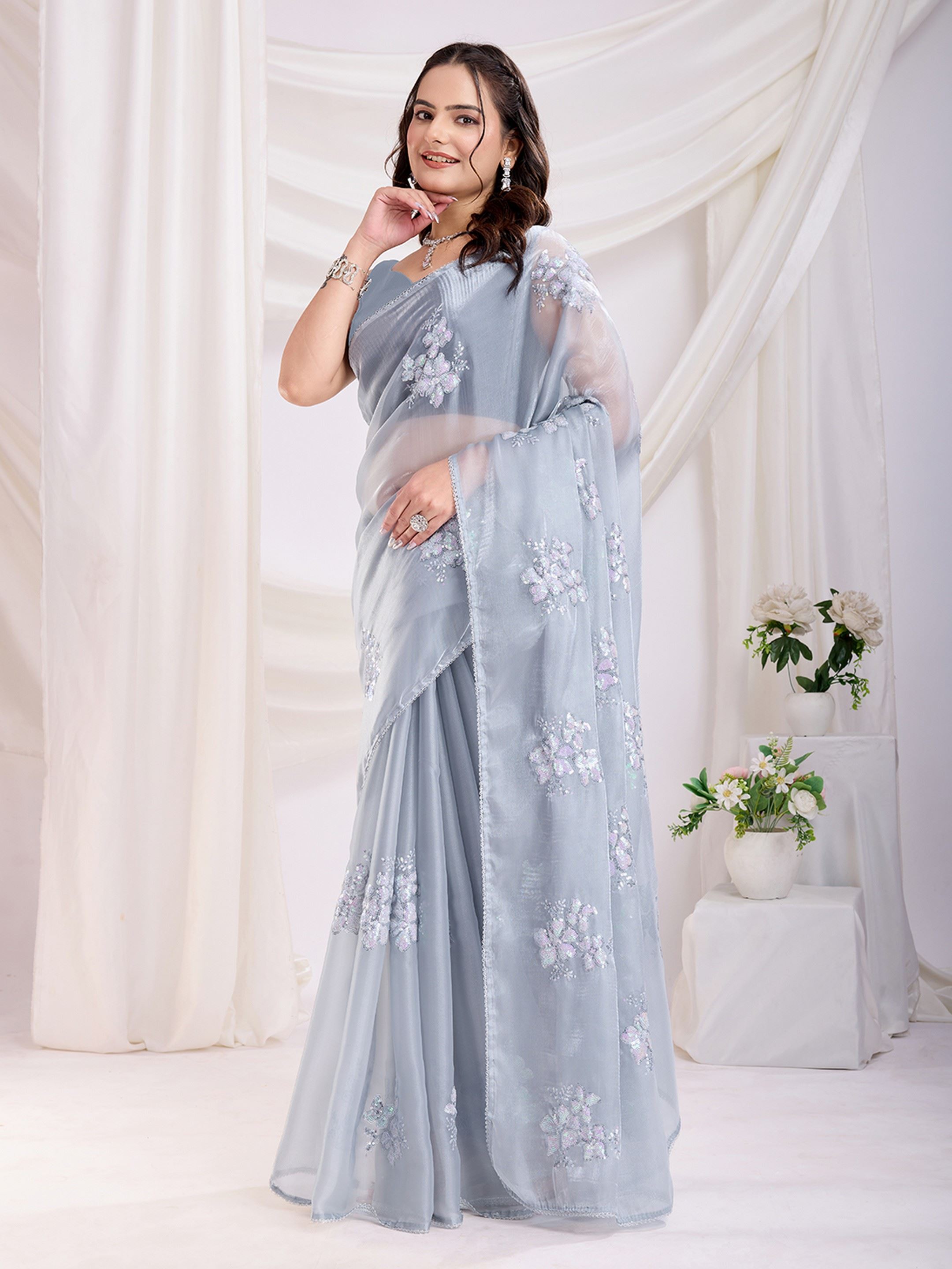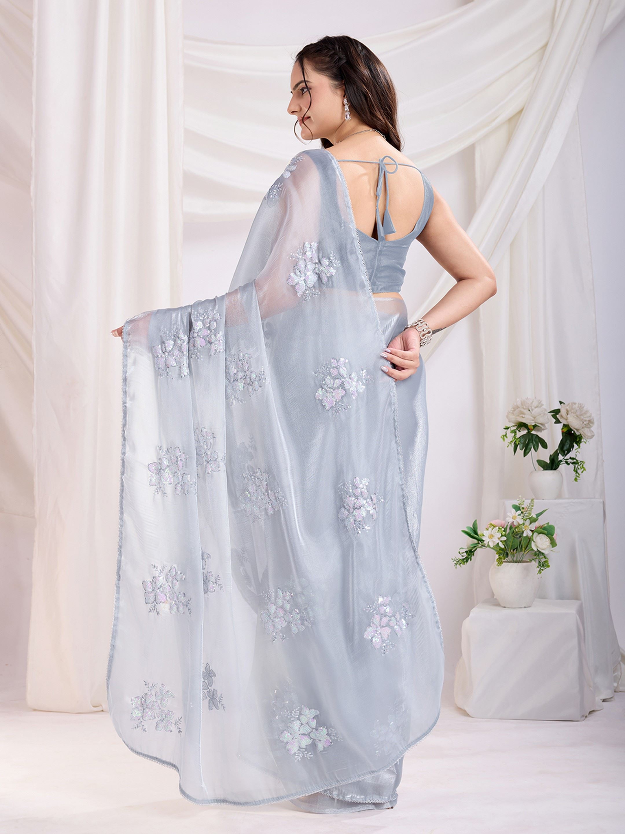Grey Jimmi Choo Sequins Embroidery Work Ethnic Party Saree