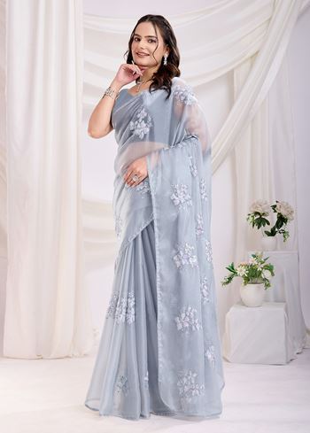 The embroidered detailing with shimmering sequins reflects impeccable craftsmanship, making this saree ideal for women who seek a balance of tradition and modern fashion. If you are looking to buy party wear sarees, Bollywood-inspired ethnic outfits, or premium designer collections online, this grey drape offers an elegant and versatile option. Its lightweight texture makes it easy to drape while ensuring you remain stylish and comfortable throughout your celebration.