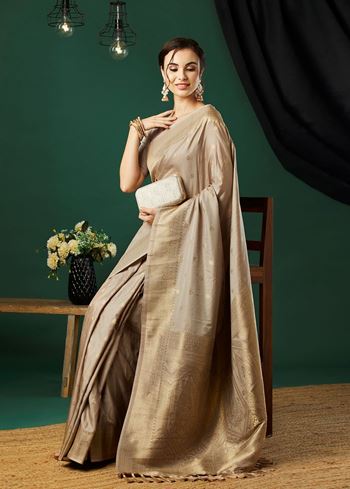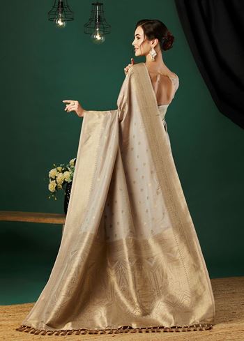 Grey Nylon Banarasi Woven Jacquard Designer Ethnic Indian Traditional Look Saree