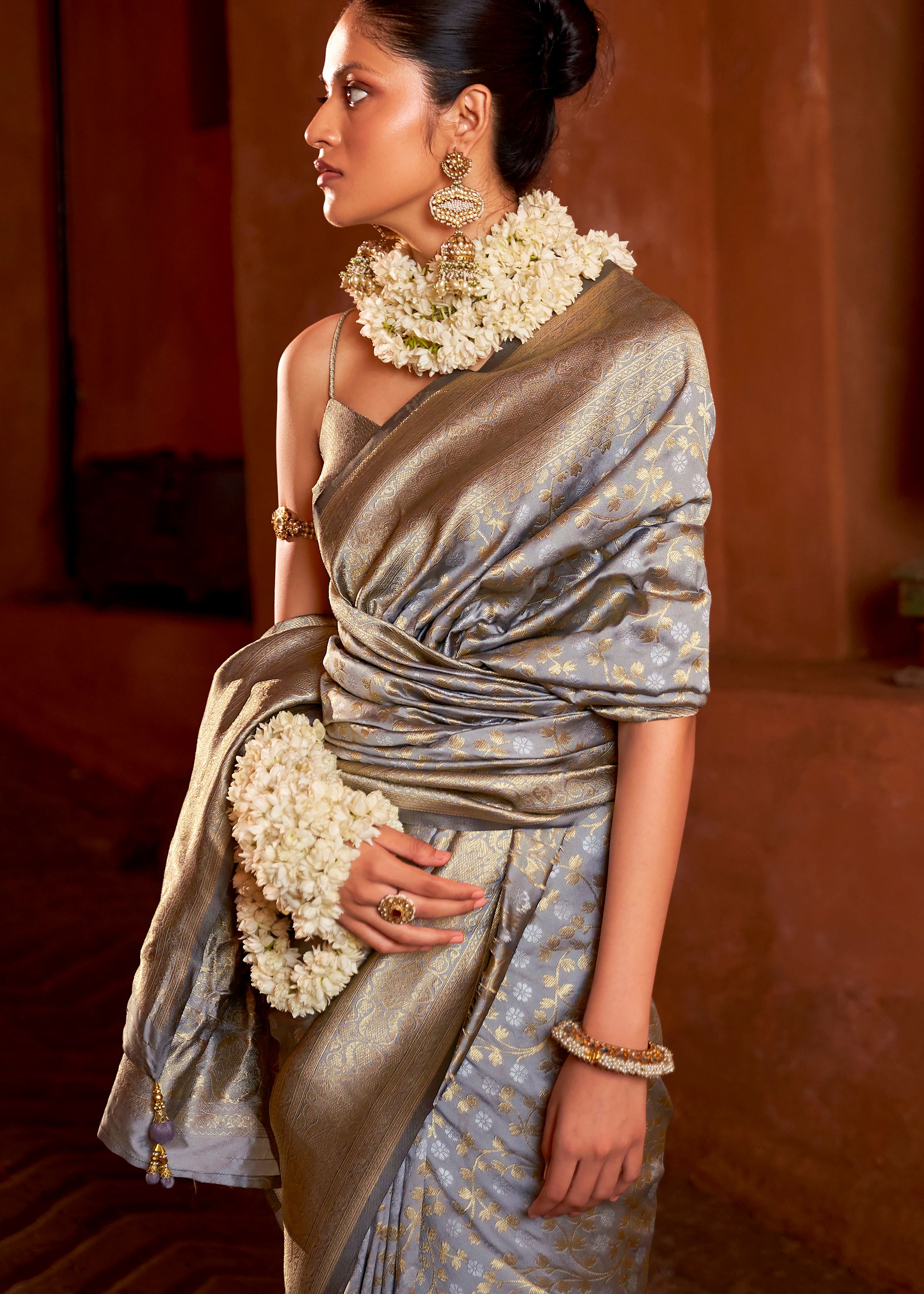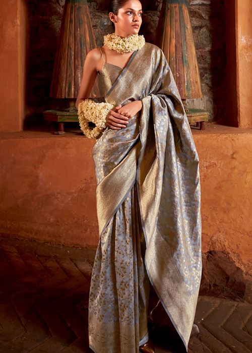 Grey Pure Viscose Silk Saree With Jacquard Woven Work