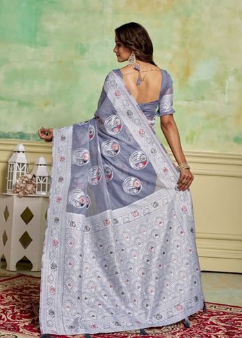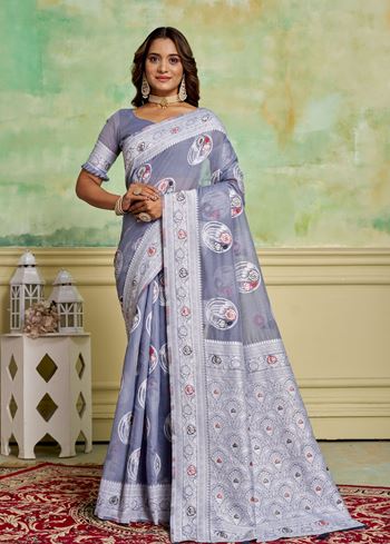 Grey Rich And Elegant Woven Designer Cotton Fabric Saree