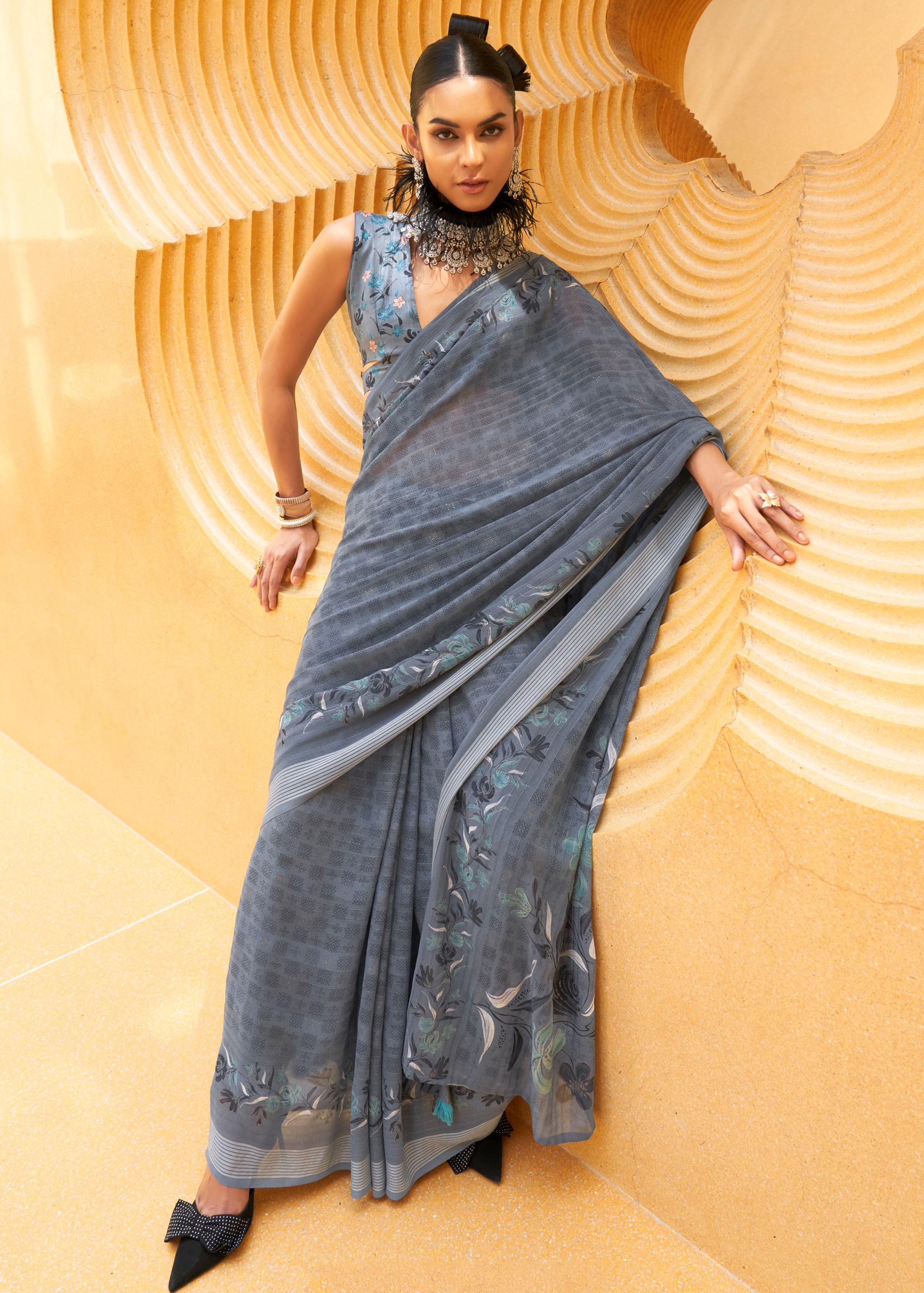 | Saree Colour | Grey Saree |