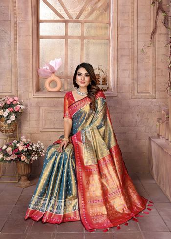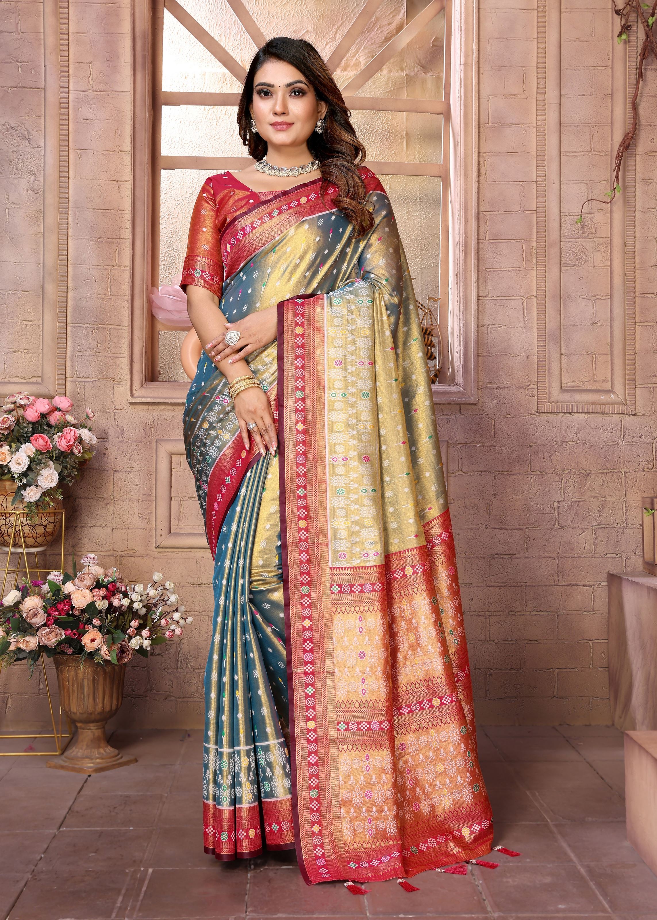 Grey Woven Patola Designer Banarasi Tissue Silk Saree