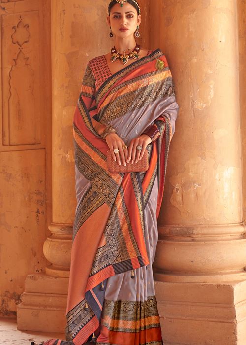 Heather Silk Saree with Jacquard Woven Work