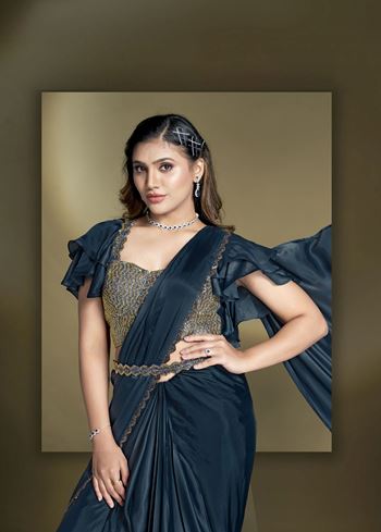 This saree is ready to wear, saving you time while keeping you stylish. Pair it with statement earrings, metallic heels, and a designer clutch for a complete party look. Whether it's a grand celebration or a cocktail night, this saree will make you stand out in elegance.Shop now from Aethnofit Fashions and enjoy secure worldwide delivery along with our custom blouse stitching service for just $1 for a perfect tailored fit.