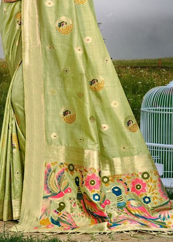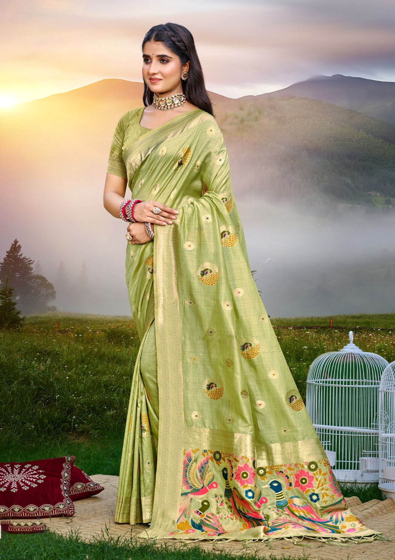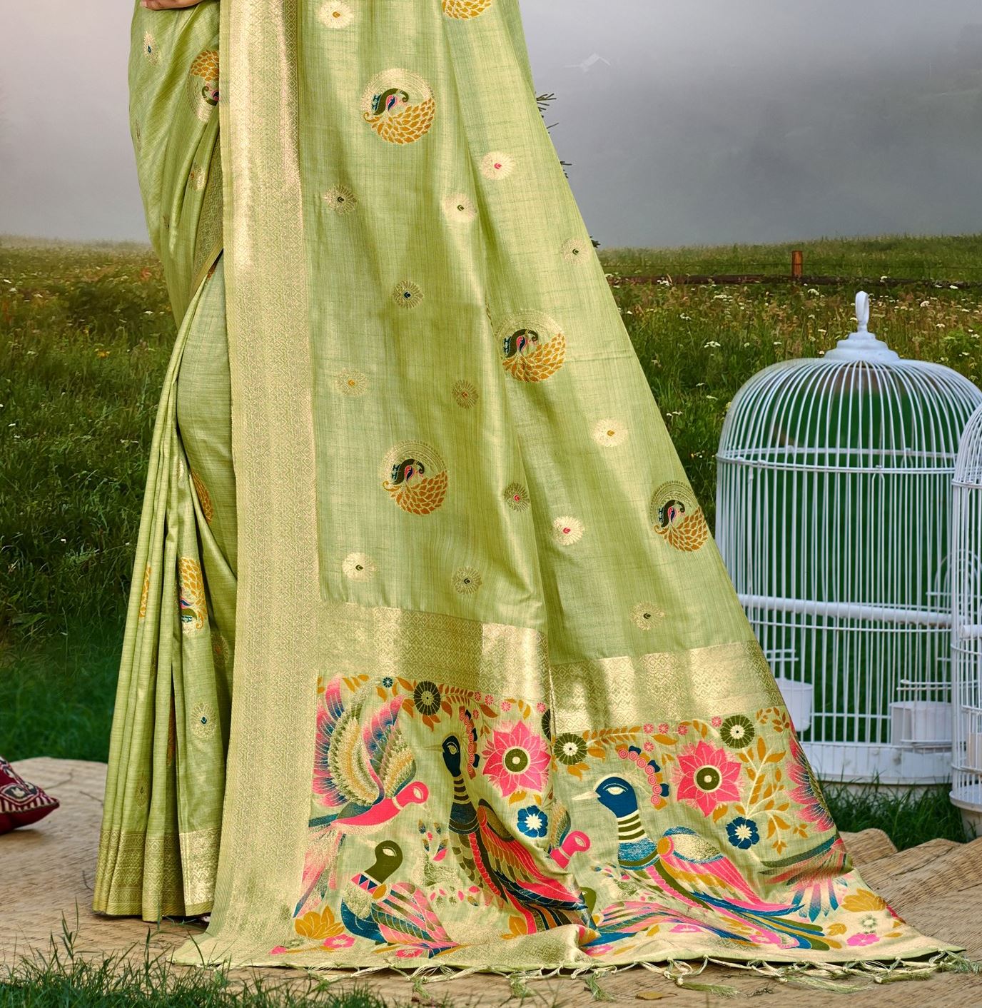 Heirloom Green Assam Silk Meenakari Festival Saree