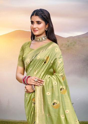 Featuring intricate Meenakari work, this saree showcases exquisite craftsmanship, adding a subtle regal charm to your ensemble. The matching green Assam silk blouse completes the look, creating a harmonious and polished outfit. Lightweight and breathable, it ensures ease of wear while maintaining a graceful silhouette throughout your celebrations.