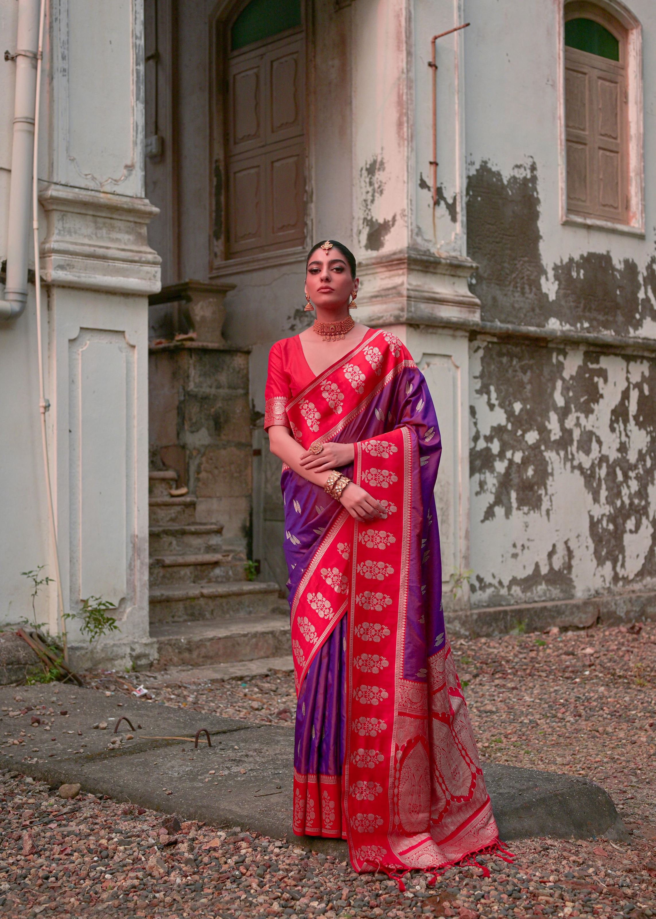 Lavender Banarasi Silk Woven Jari Designer Heavy Rich Looks Ceremonial Saree