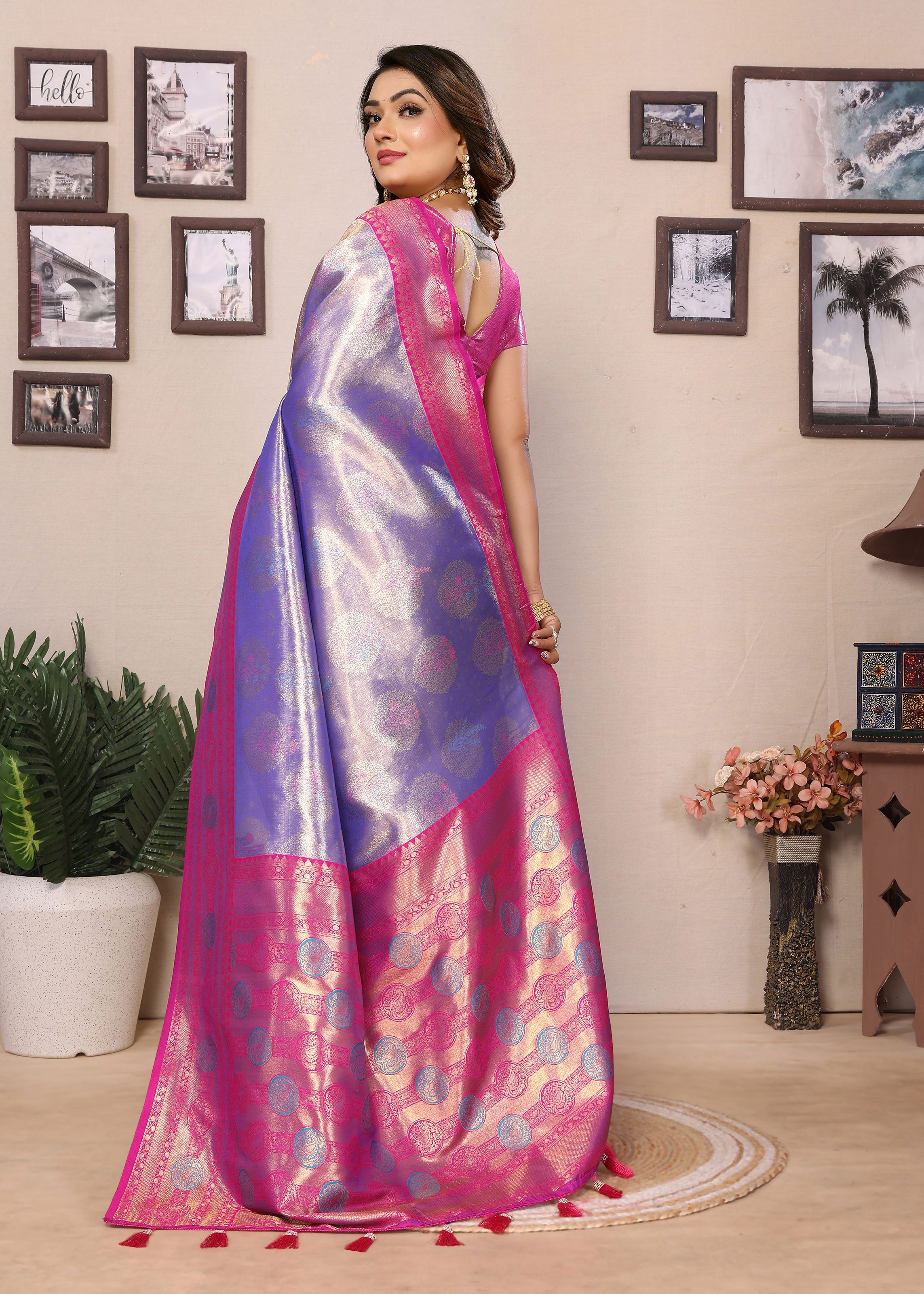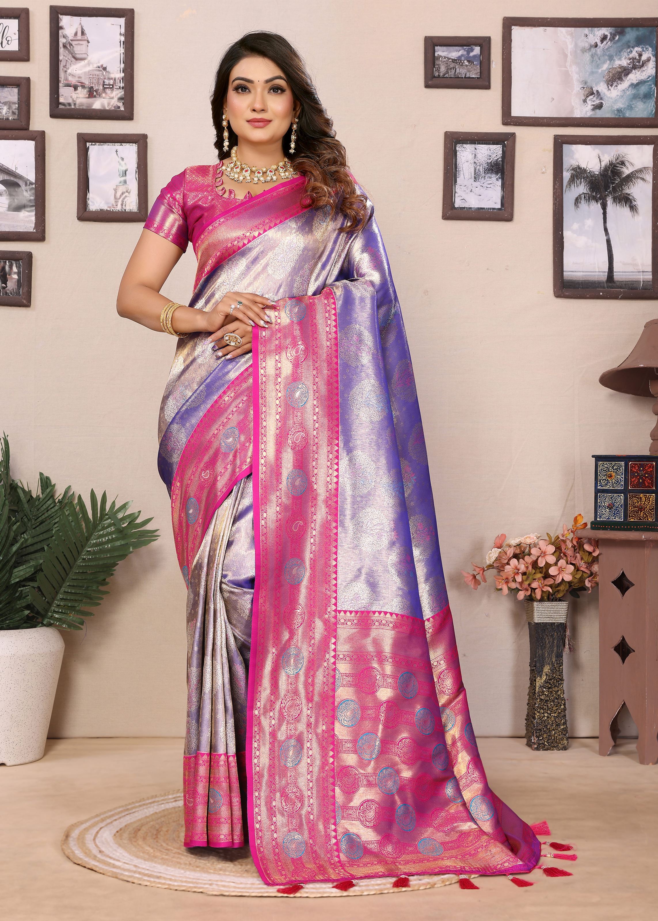 Lavender Banarasi Tissue Silk Saree With Woven Paithani Designer
