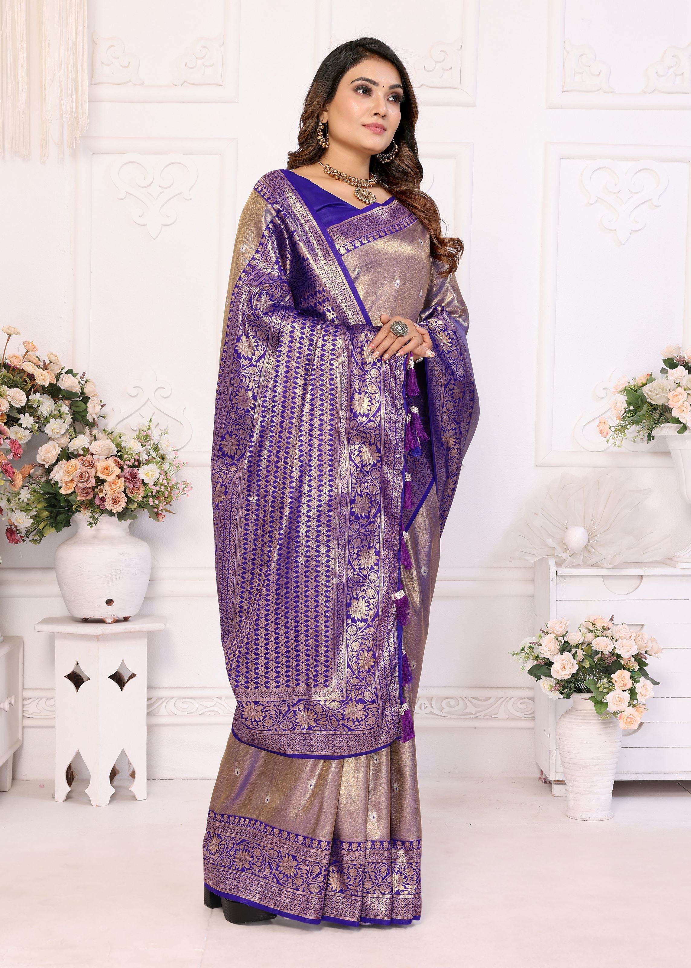 Lavender Banarasi Tissue Silk Woven Jari Heavy Designer Saree