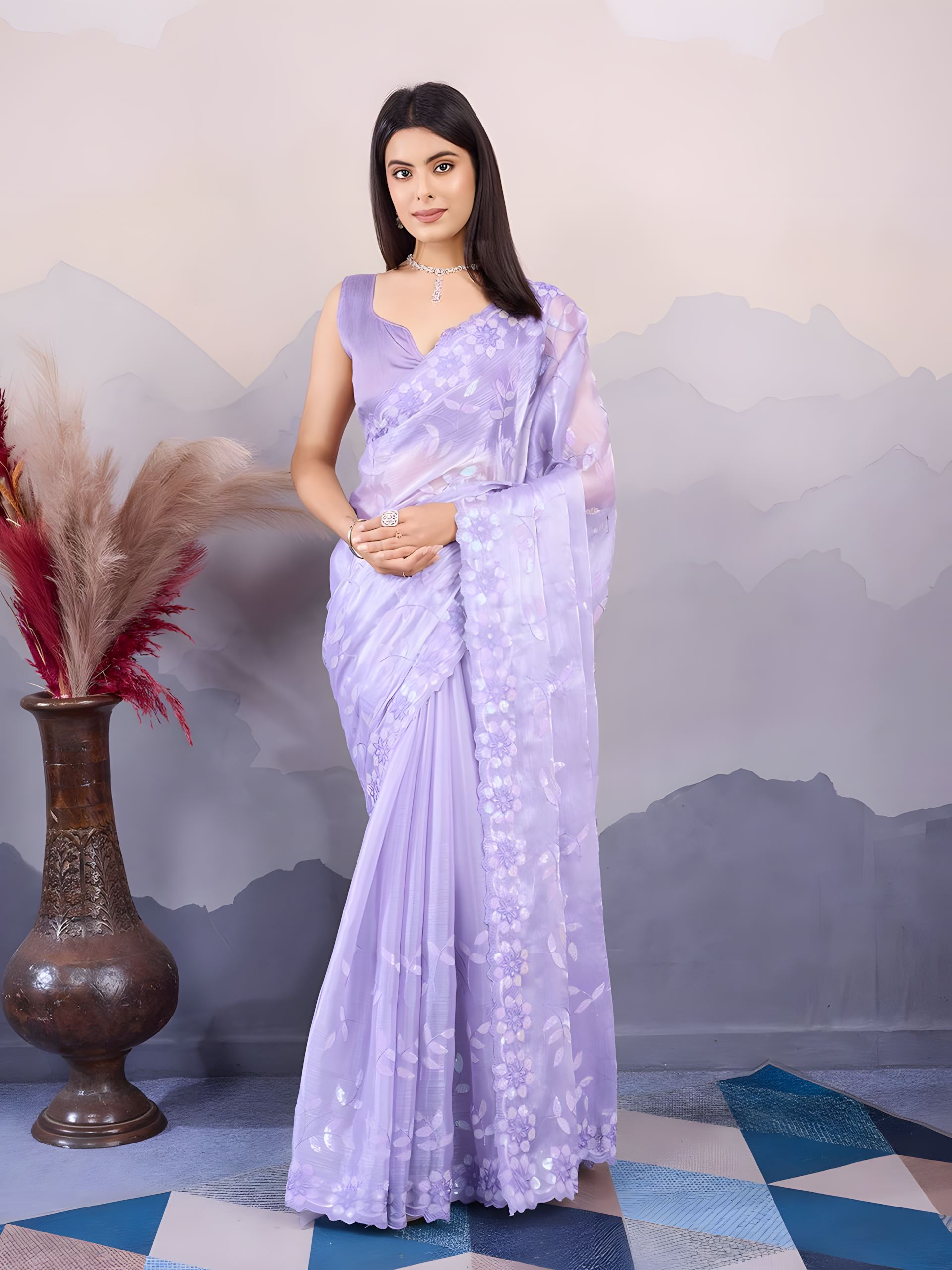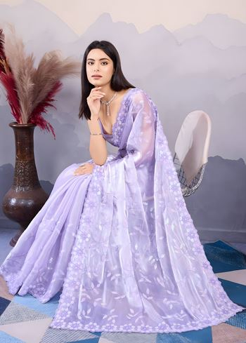 Lavender Burberry Silk Saree with C Pallu Embroidery with sequins Work