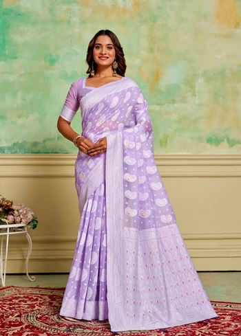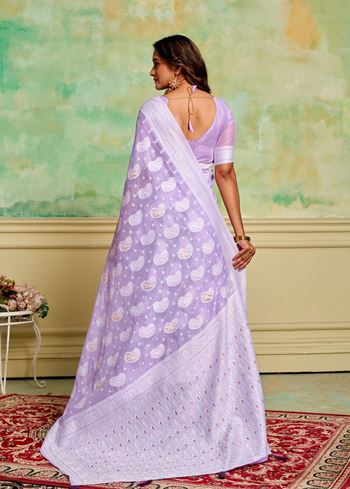 Lavender Cotton Fabric Woven Designer Ethnic Festive Wear Saree