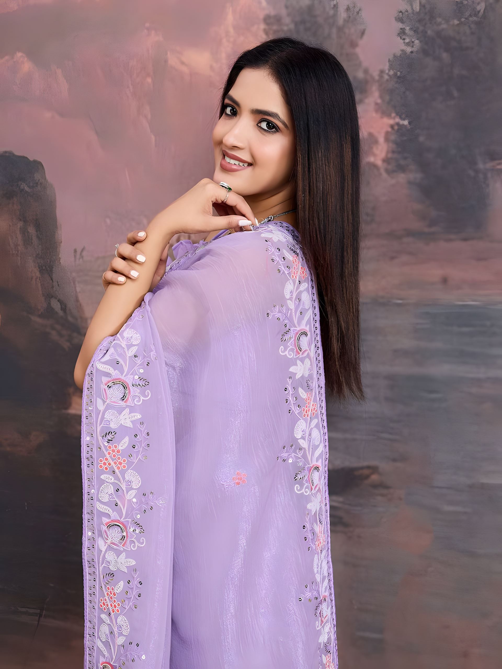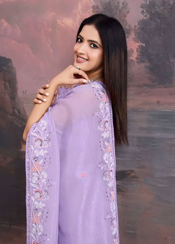 Lavender Curnchy Soft Organza Saree with C Pallu Embroidery work border